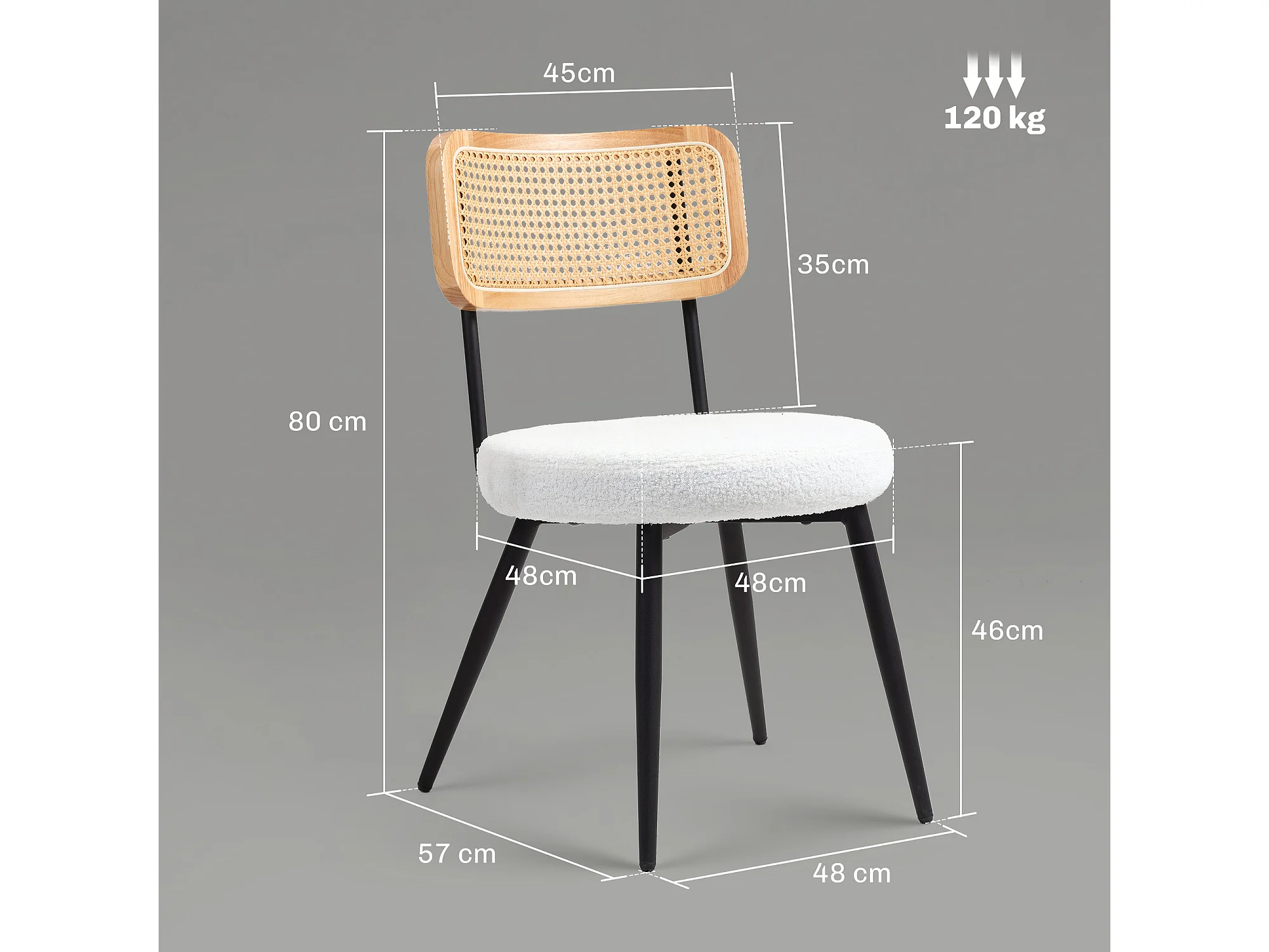 Lot de 2 chaises design assise ronde effet laine bouclée métal noir aspect bois rotin