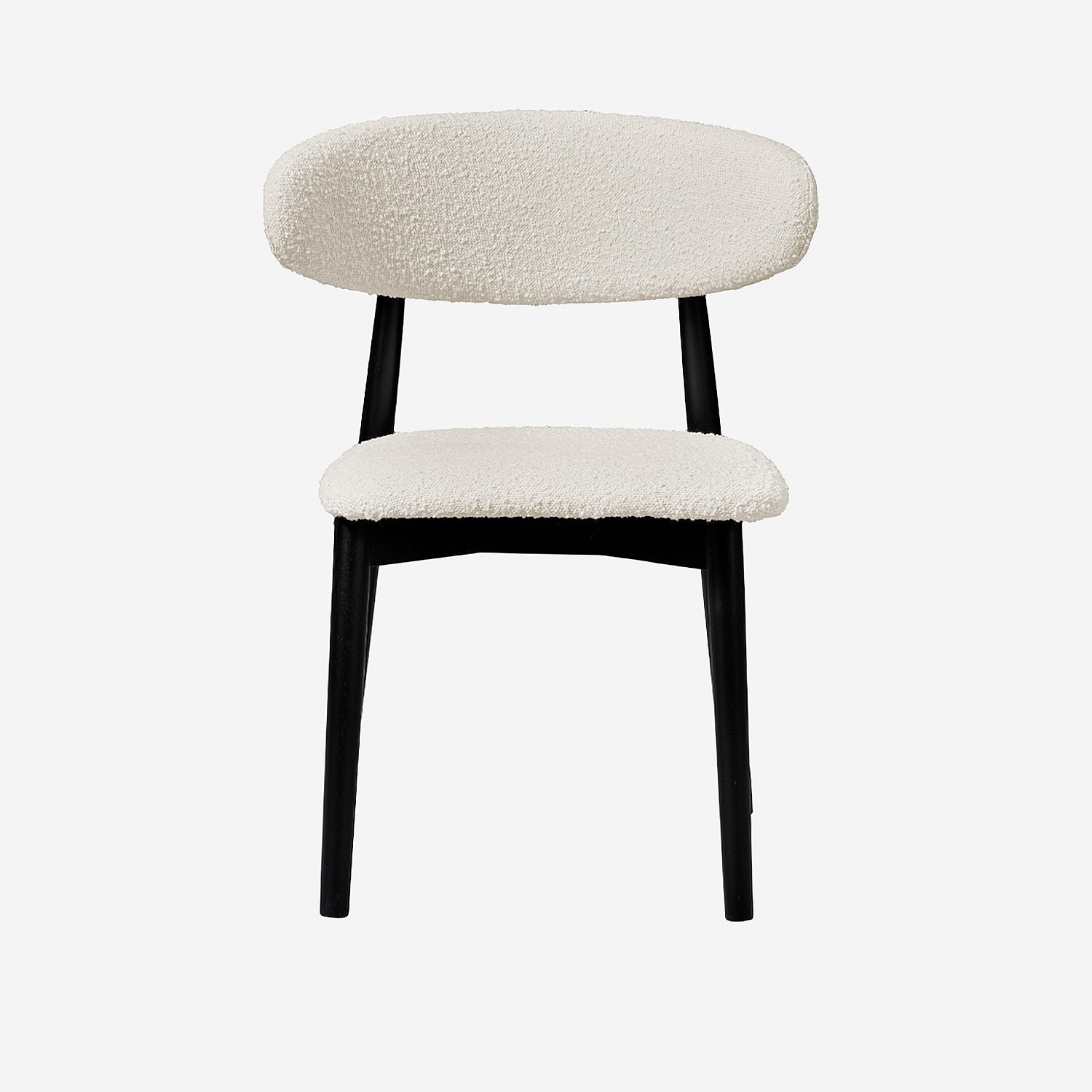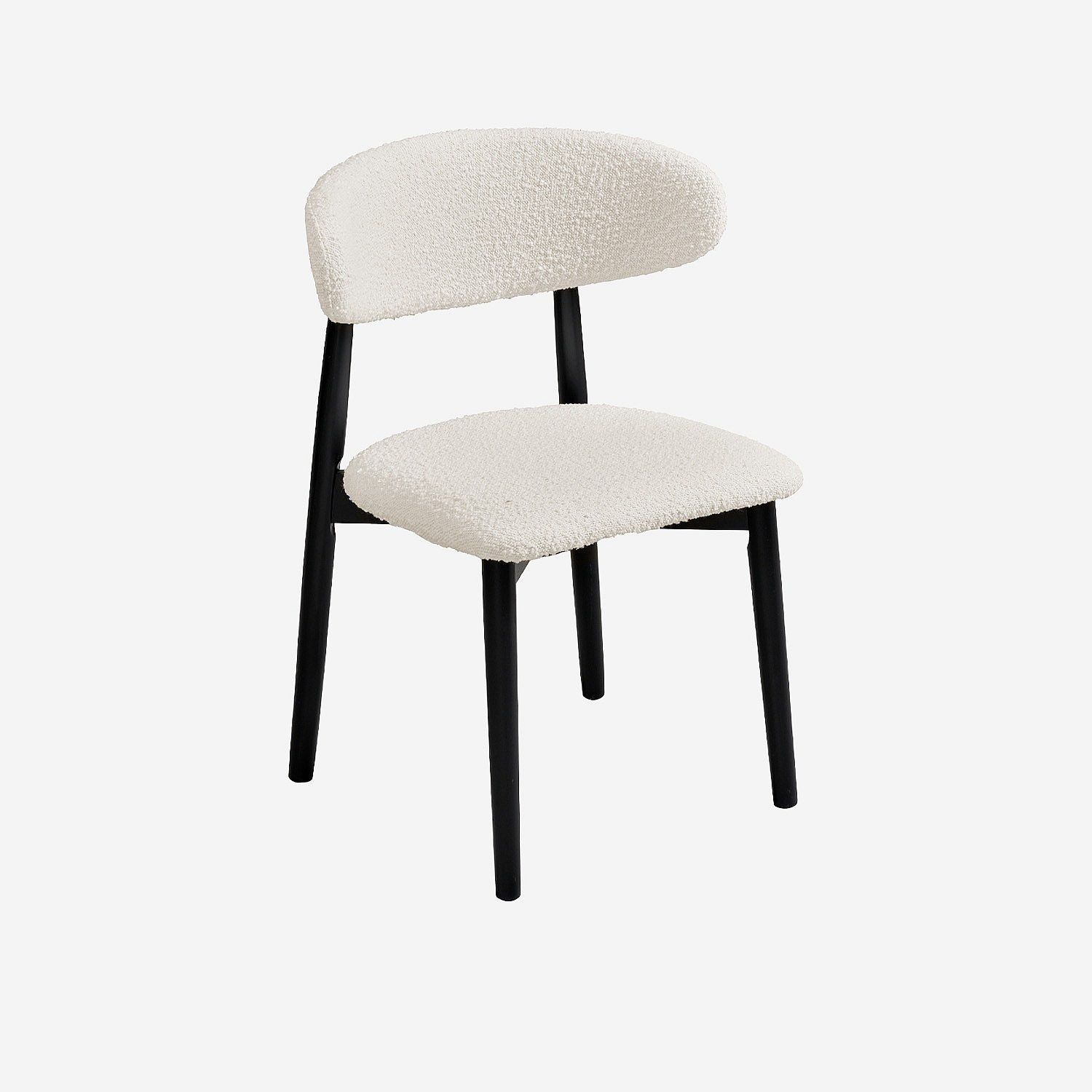 Lot de 2 chaises en bois d'hévéa noir et tissu bouclette blanc crème