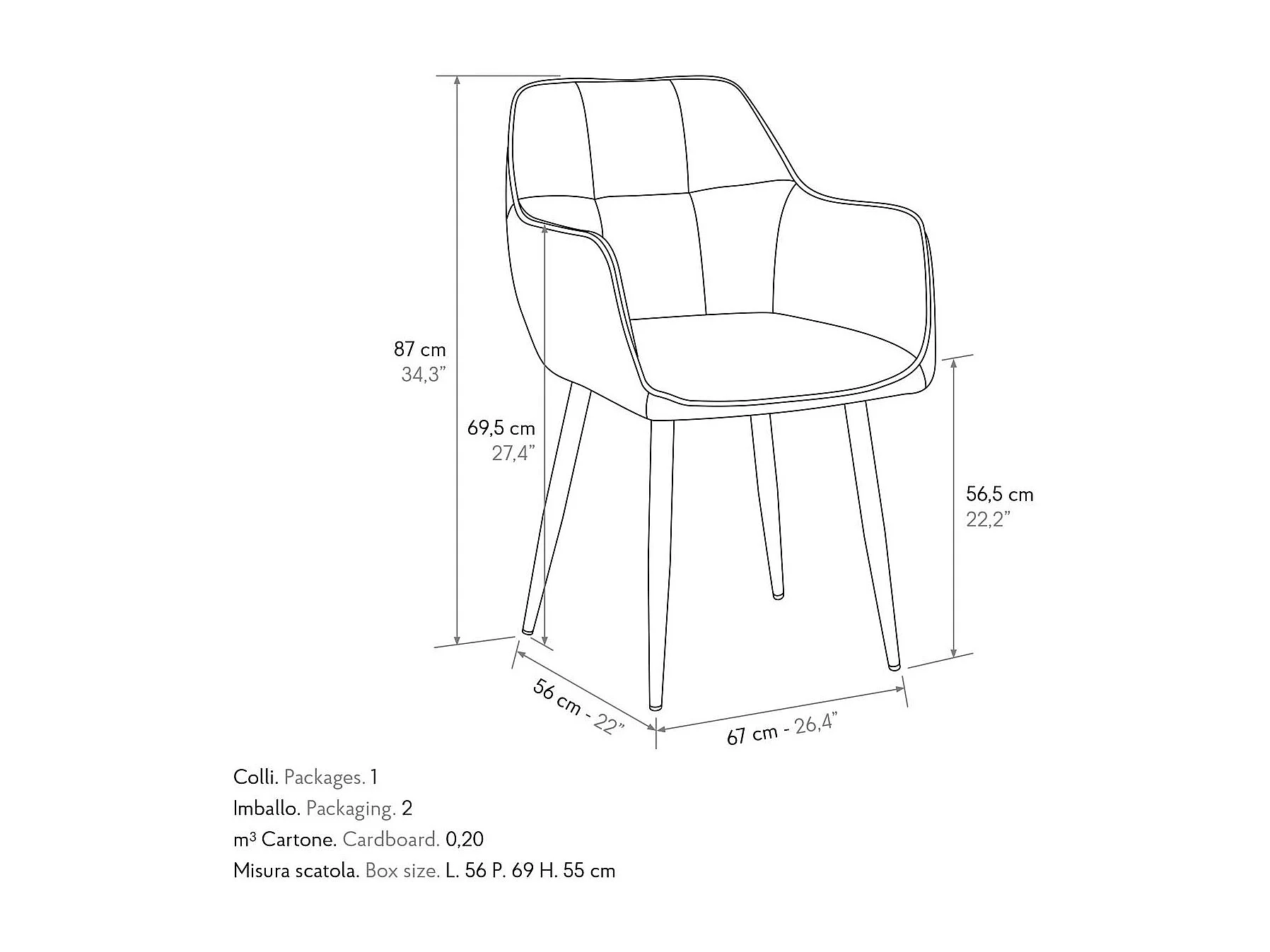 Lot de 2 chaises en simili cuir marron et pieds en métal noir, avec accoudoirs - PARIGI