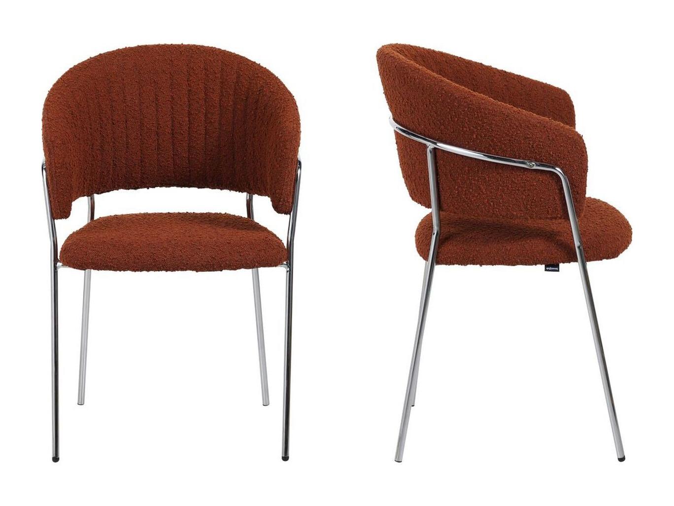 Lot de 2 chaises en tissu bouclé rouille et piètement chromé - Isya