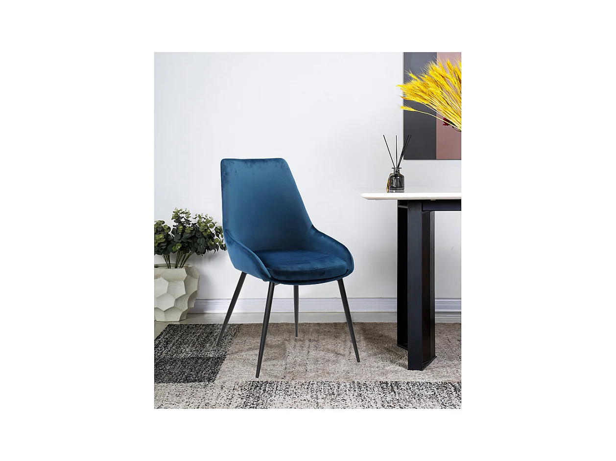 Lot de 2 chaises en velours bleu marine pieds métal noir - JAZZY