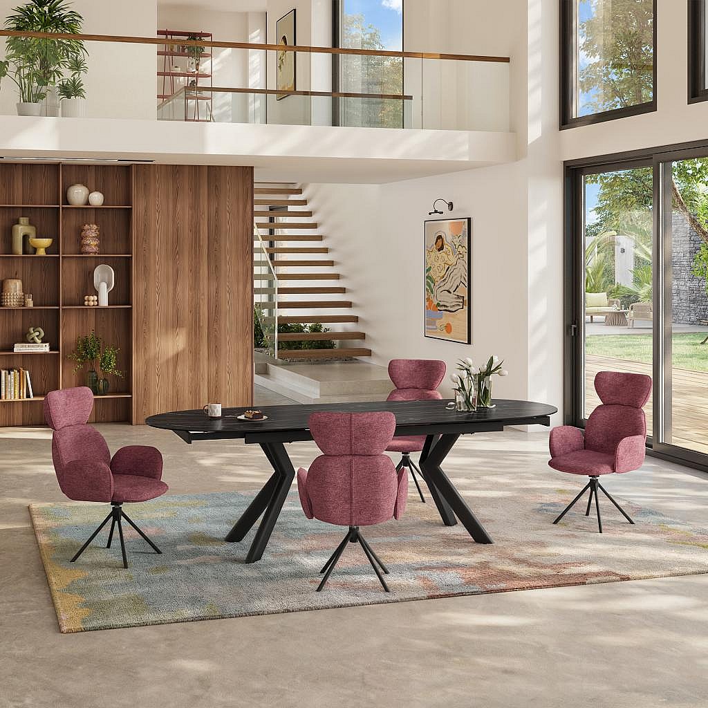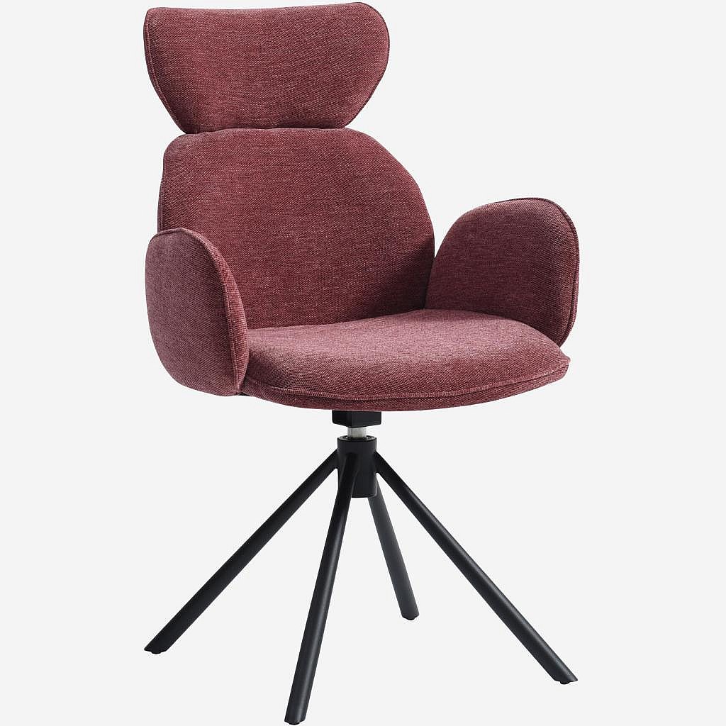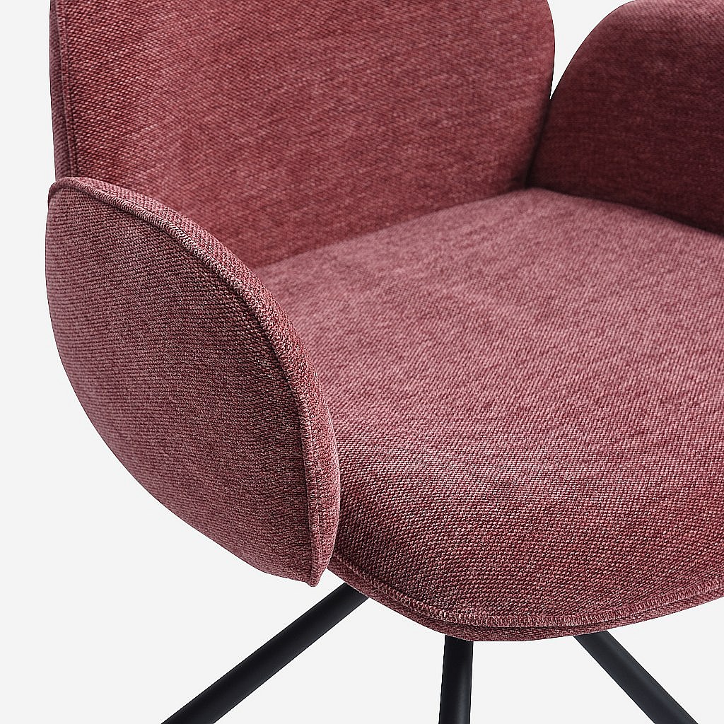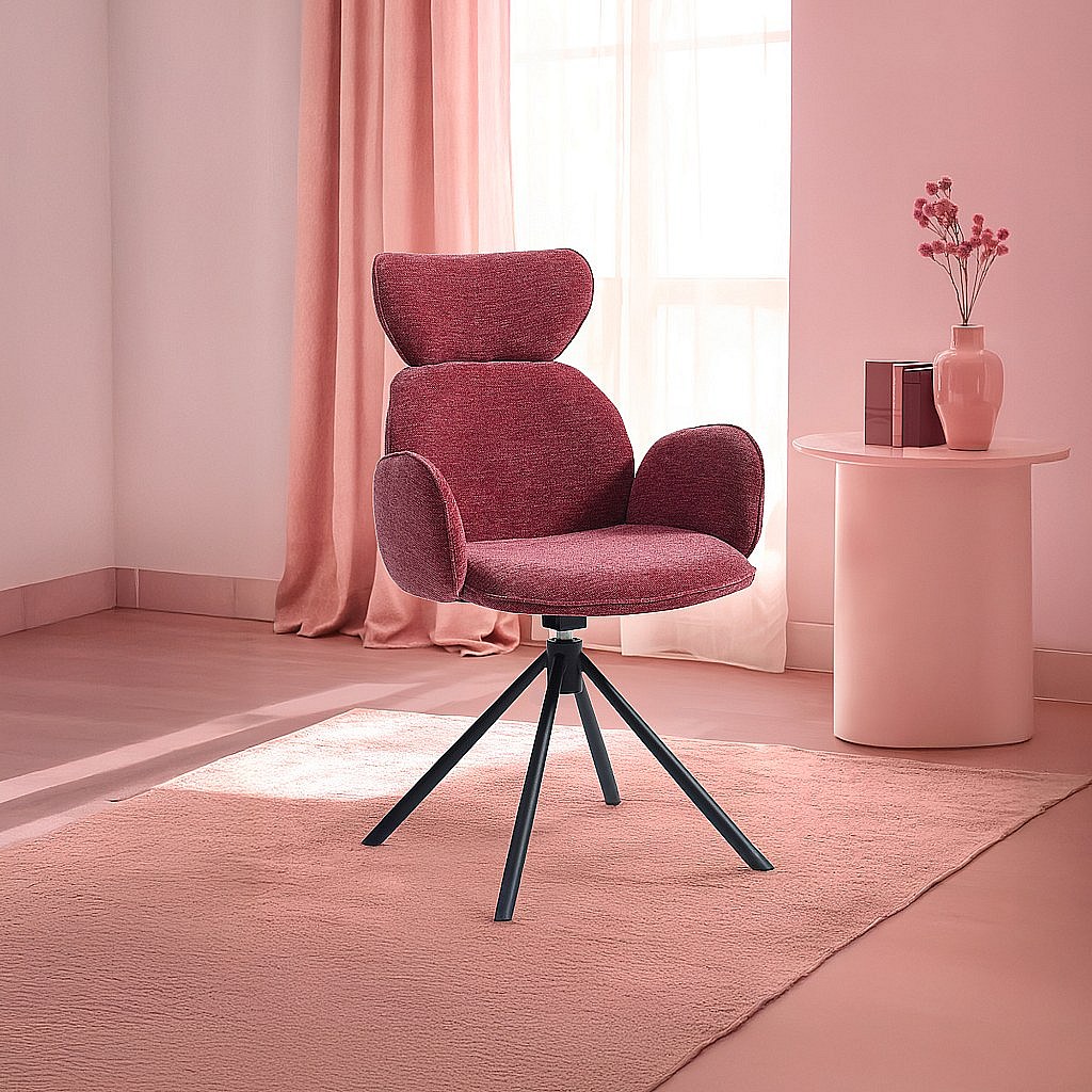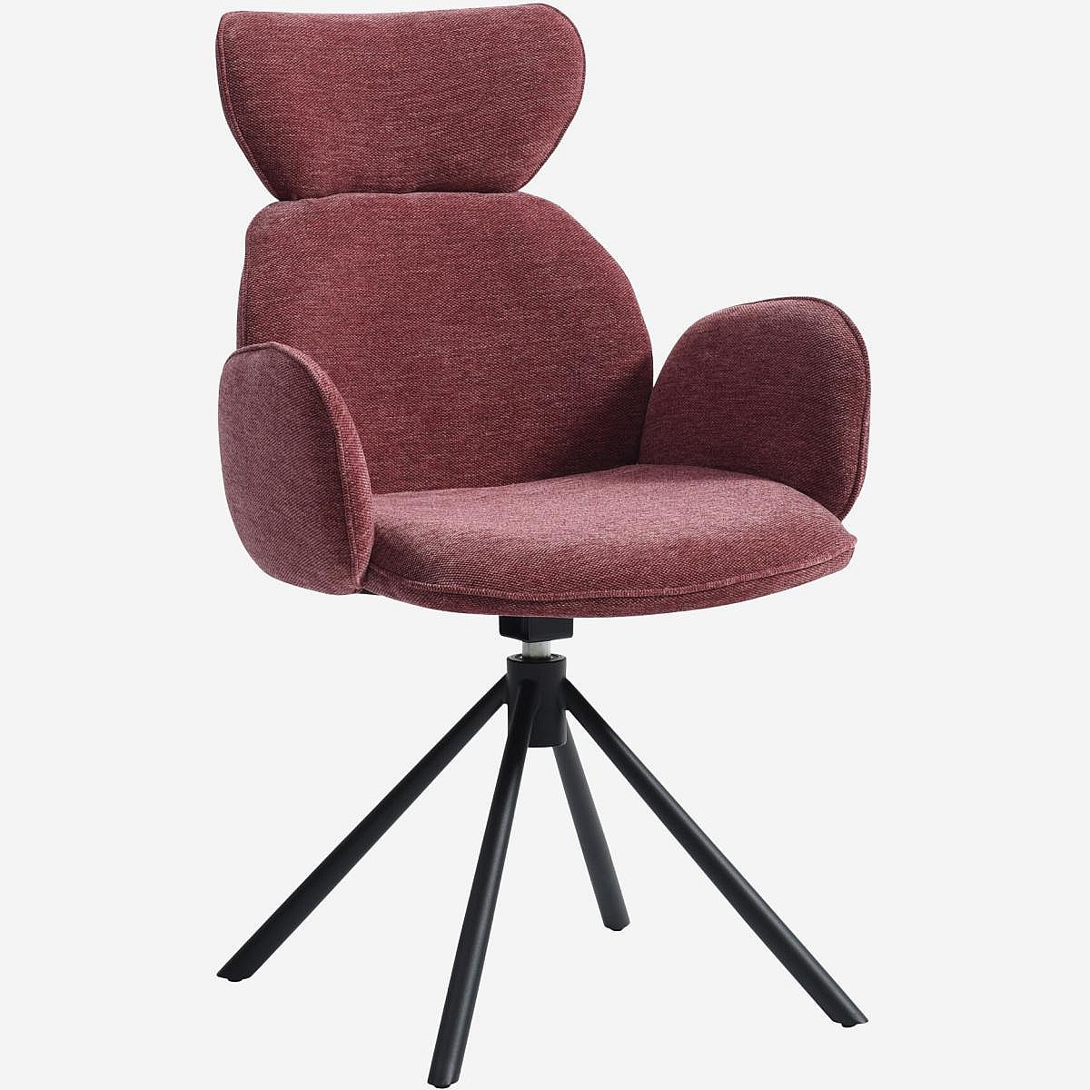 Habitat - Lot de 2 chaises pivotantes en tissu et métal noir avec accoudoirs - Rouge parme - Omida