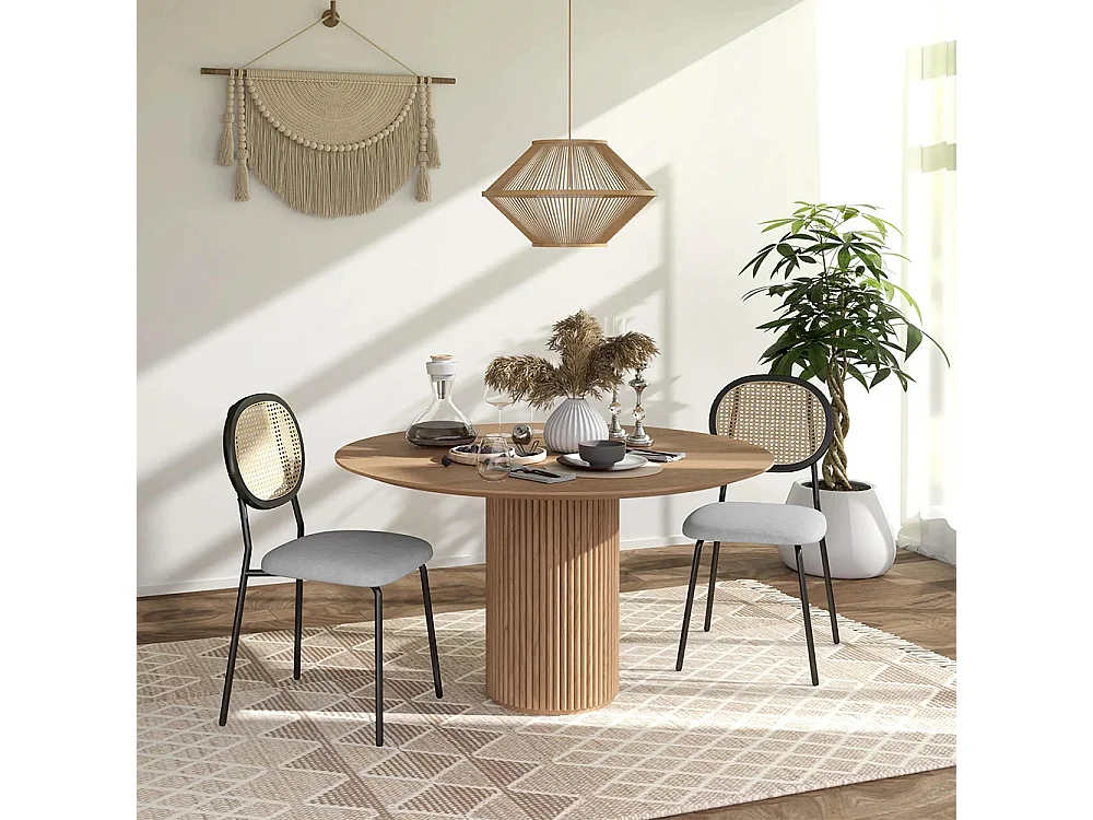 Lot de 2 chaises en velours avec dossier en rotin - pieds en métal - gris
