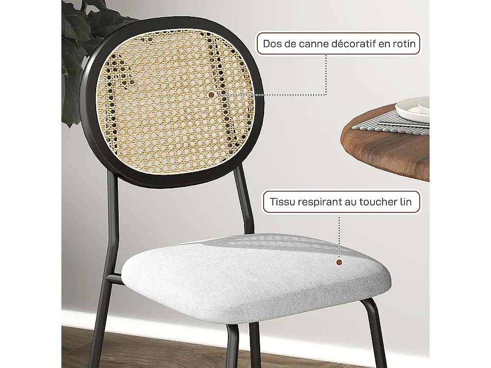 Lot de 2 chaises salle à manger chaises de cuisine dossier en rotin tissu respirant cadre acier 44 x 54 x 87 cm gris