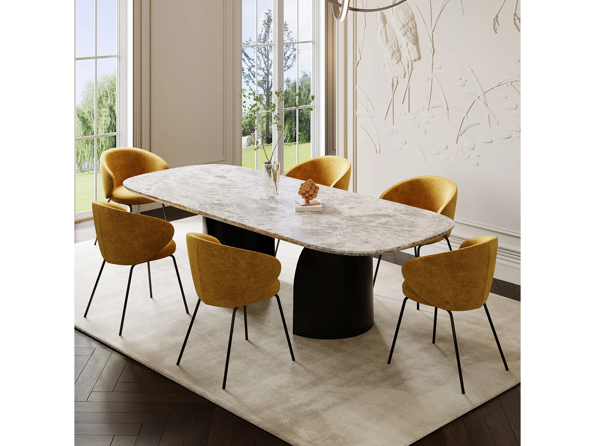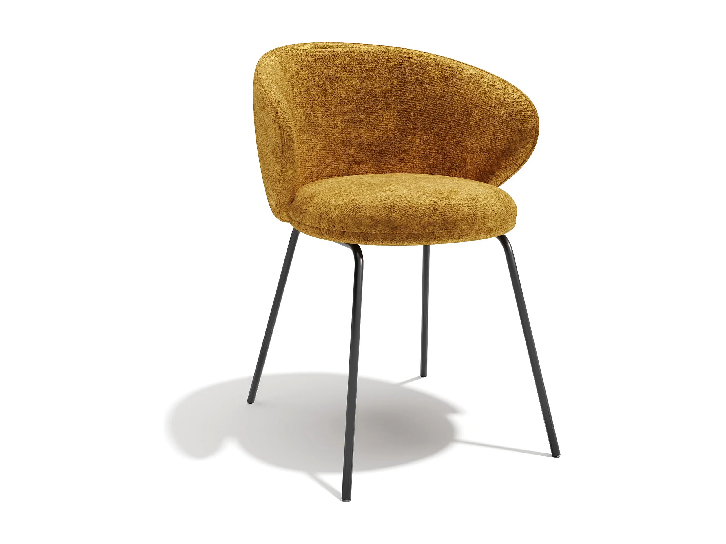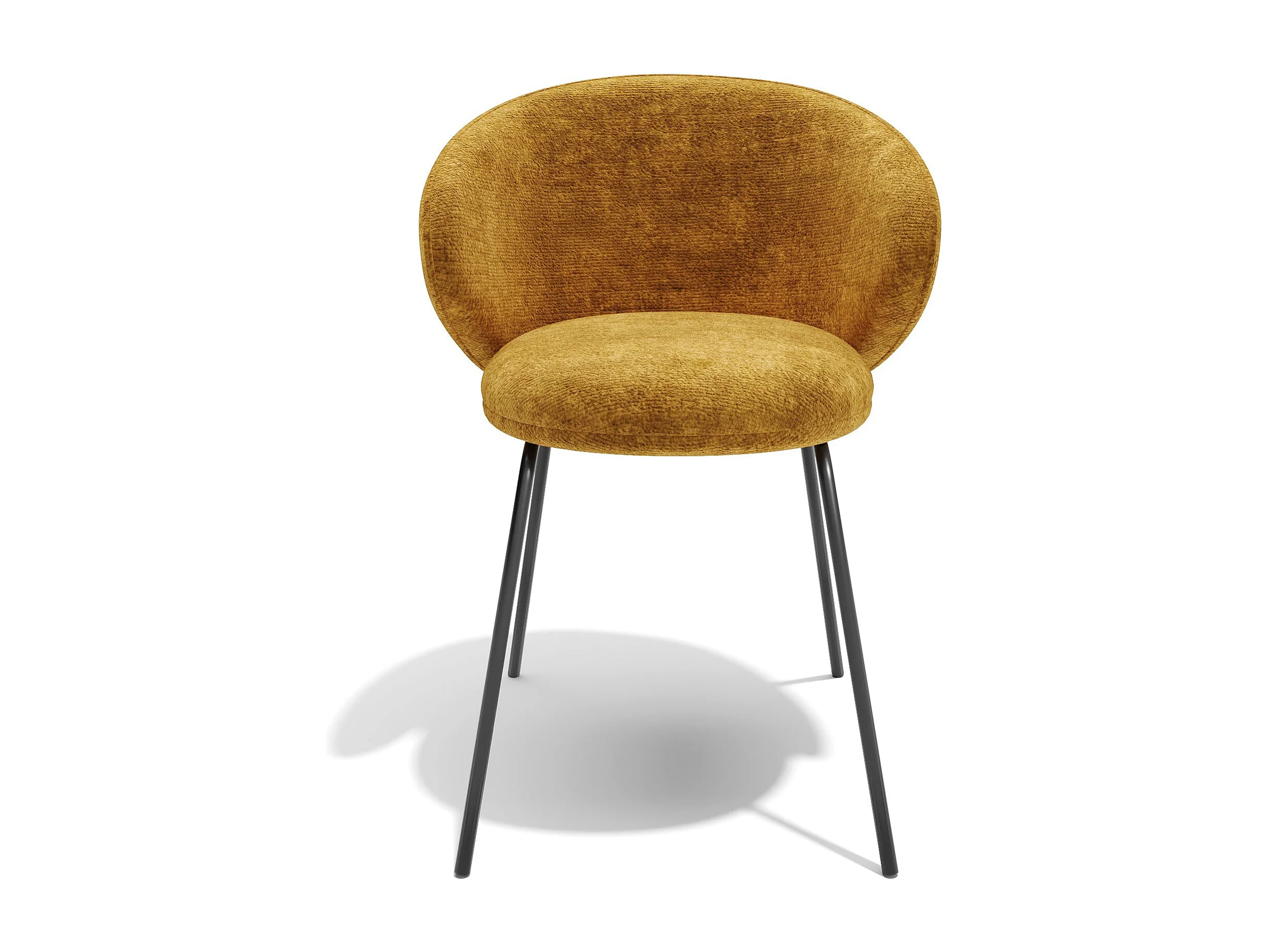 Lot de 2 chaises velours texturé moutarde et pieds noirs LUNA