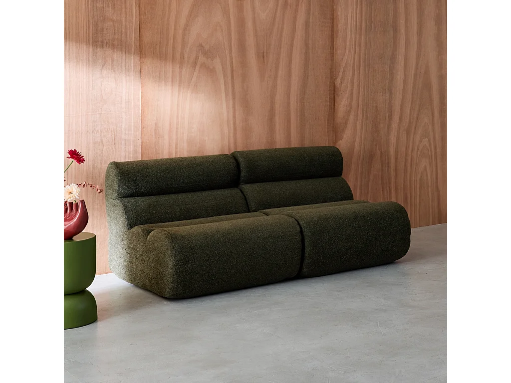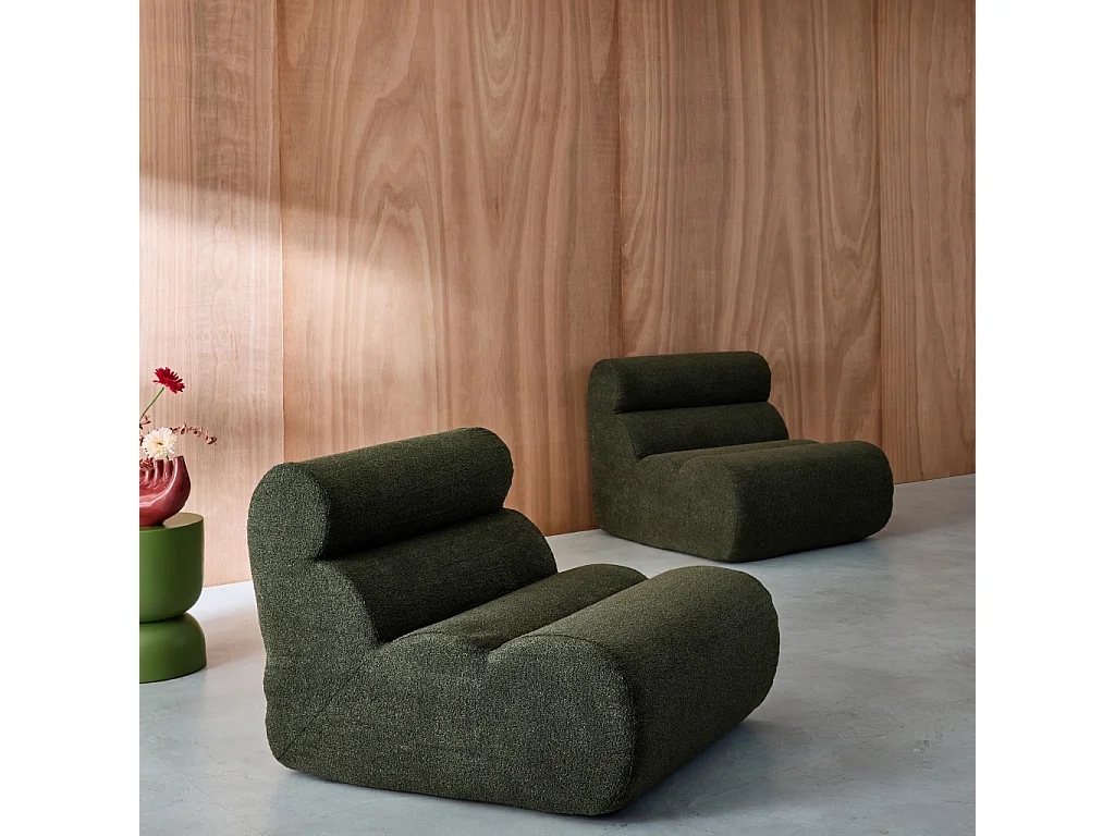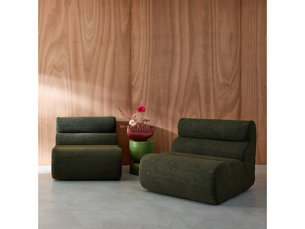 Lot de 2 chauffeuses bouclette texturée kaki 1 place - L 81 x P 99 x H 75cm - Nova