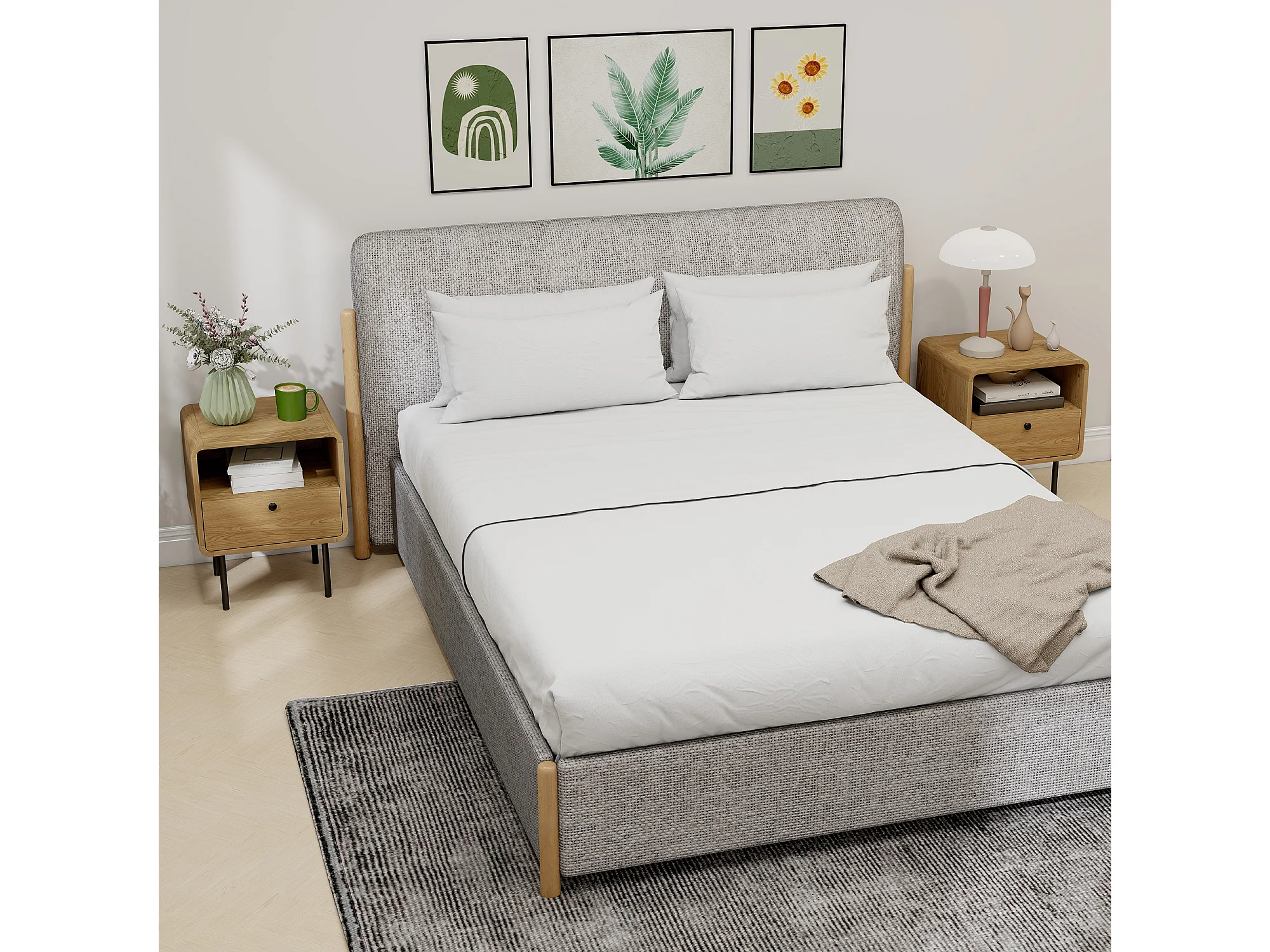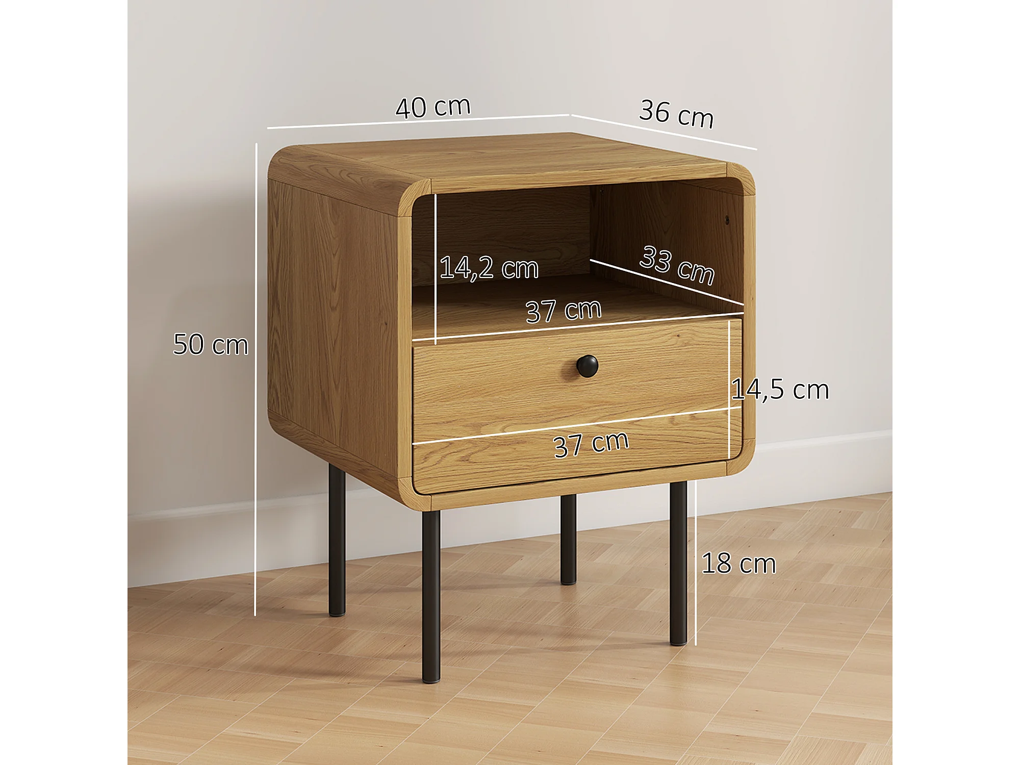 Lot de 2 chevets style vintage effet bois tiroir niche coins biseautés piètement métal poignées bouton noir