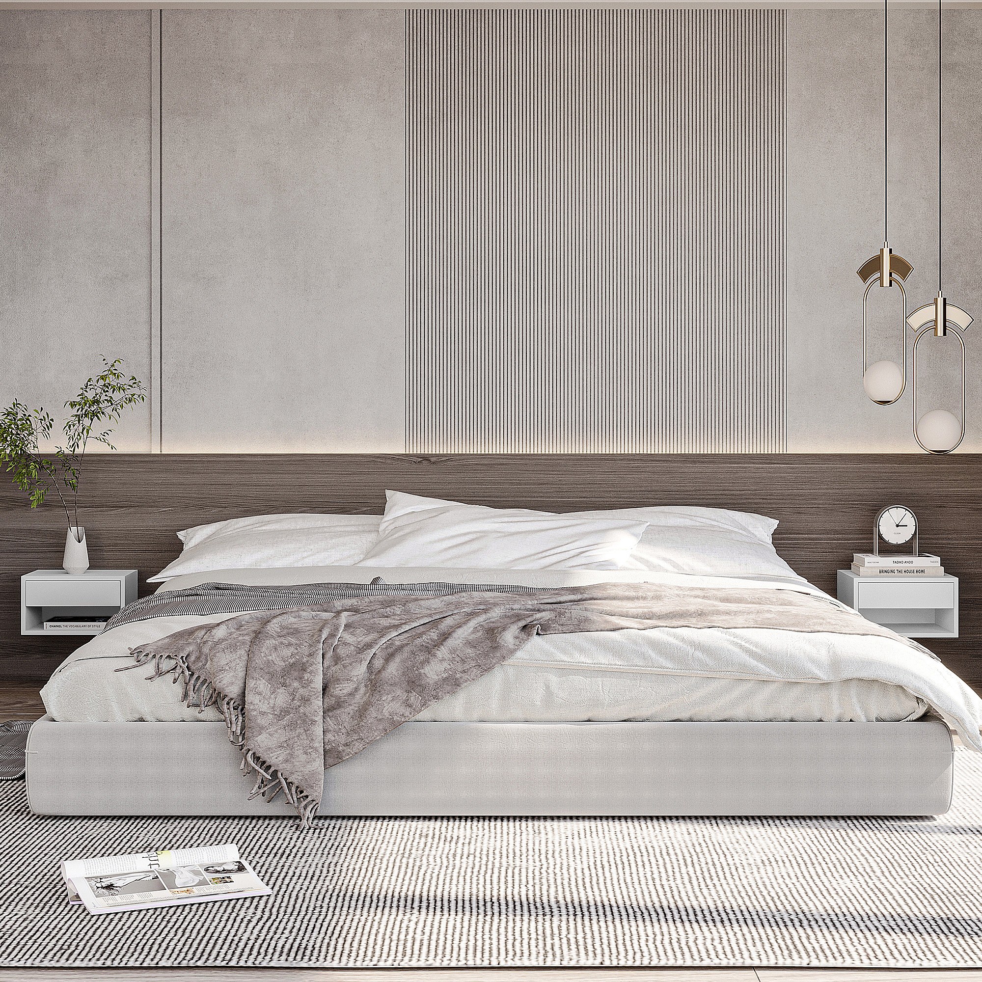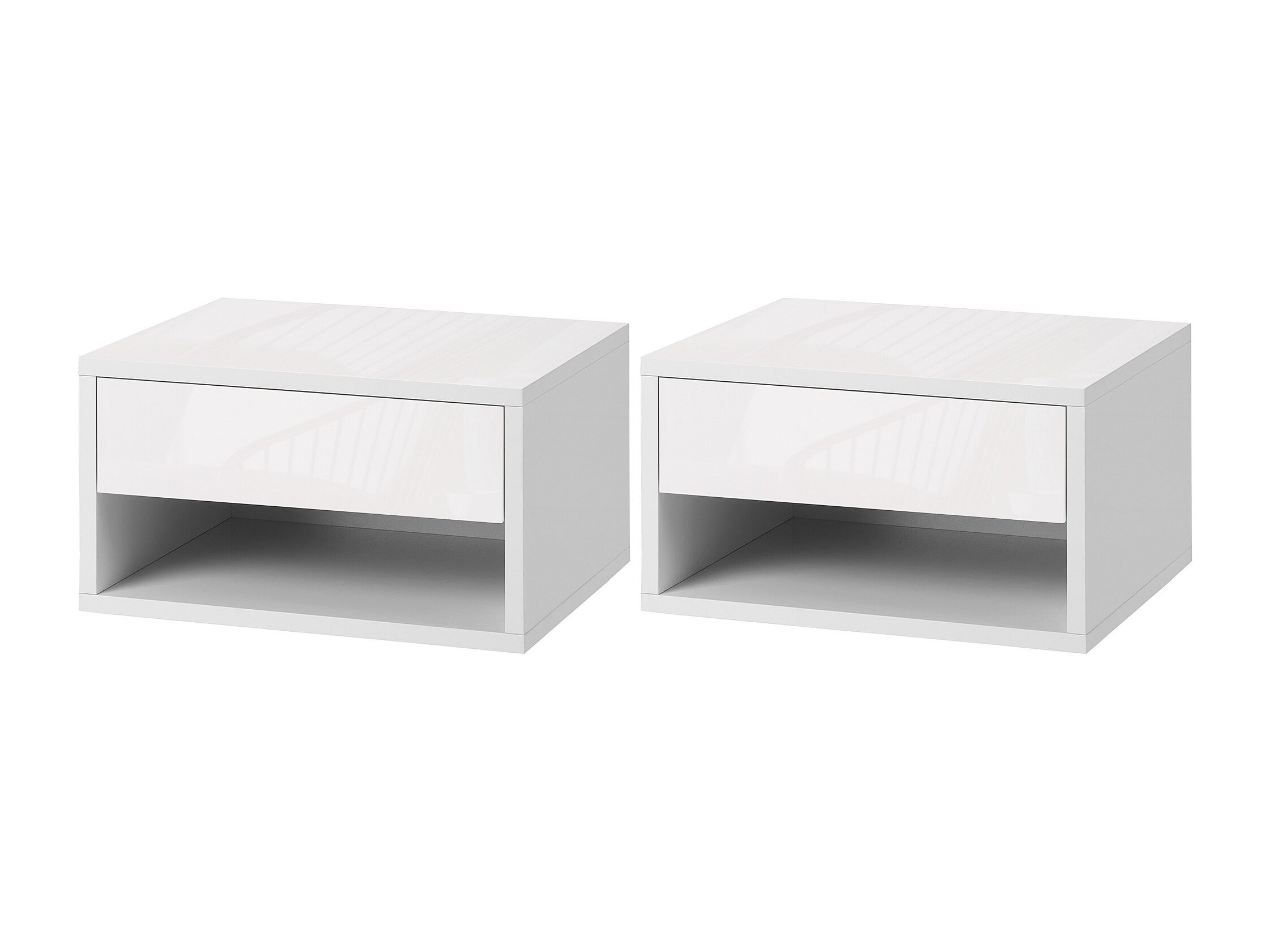 Lot de 2 chevets tables de nuit murales - tiroir coulissant, niche, plateau - dim. 37L x 32l x 21H cm - panneaux blanc