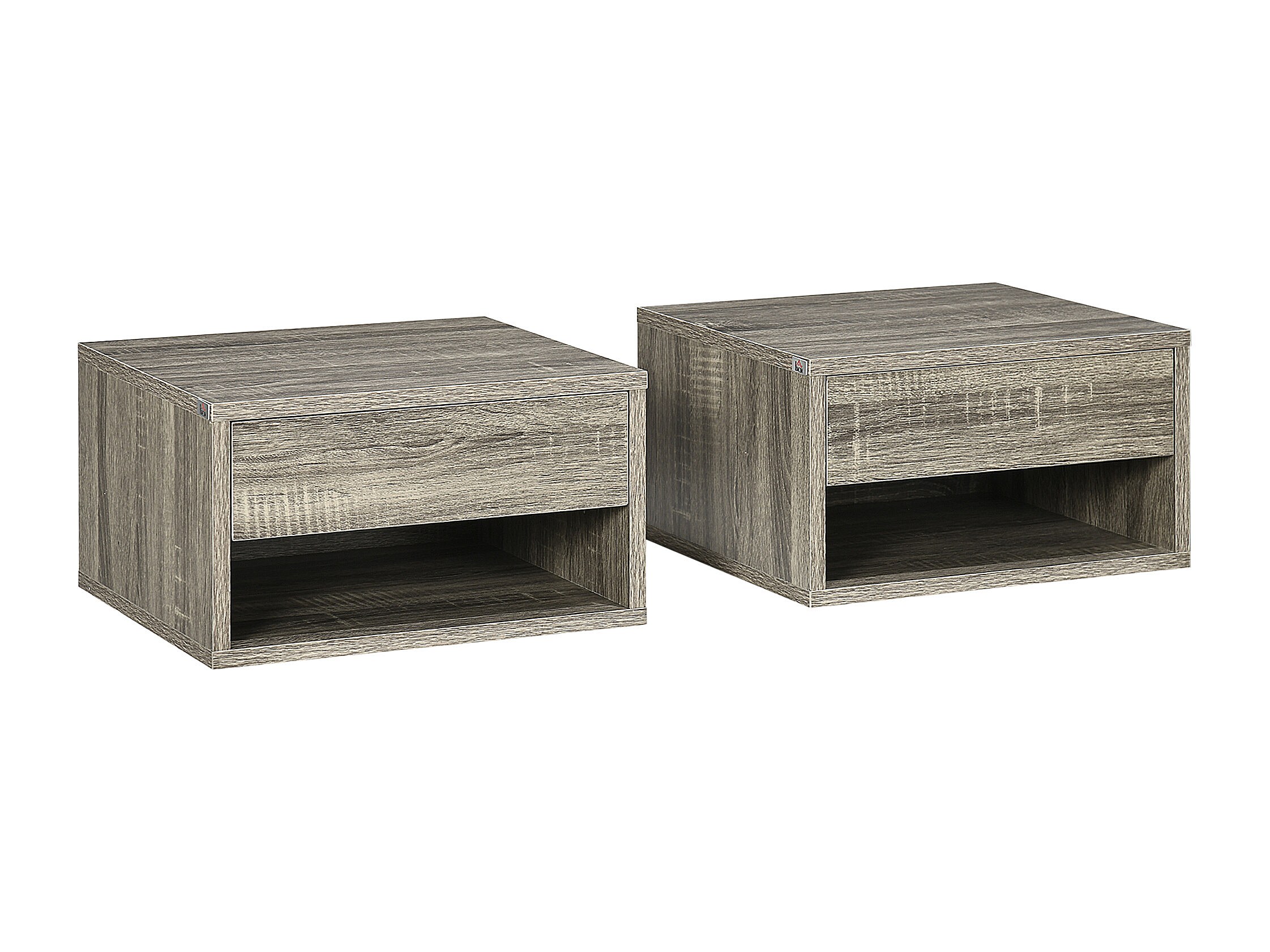 Lot de 2 chevets tables de nuit murales - tiroir coulissant, niche, plateau - dim. 37L x 32l x 21H cm - panneaux gris