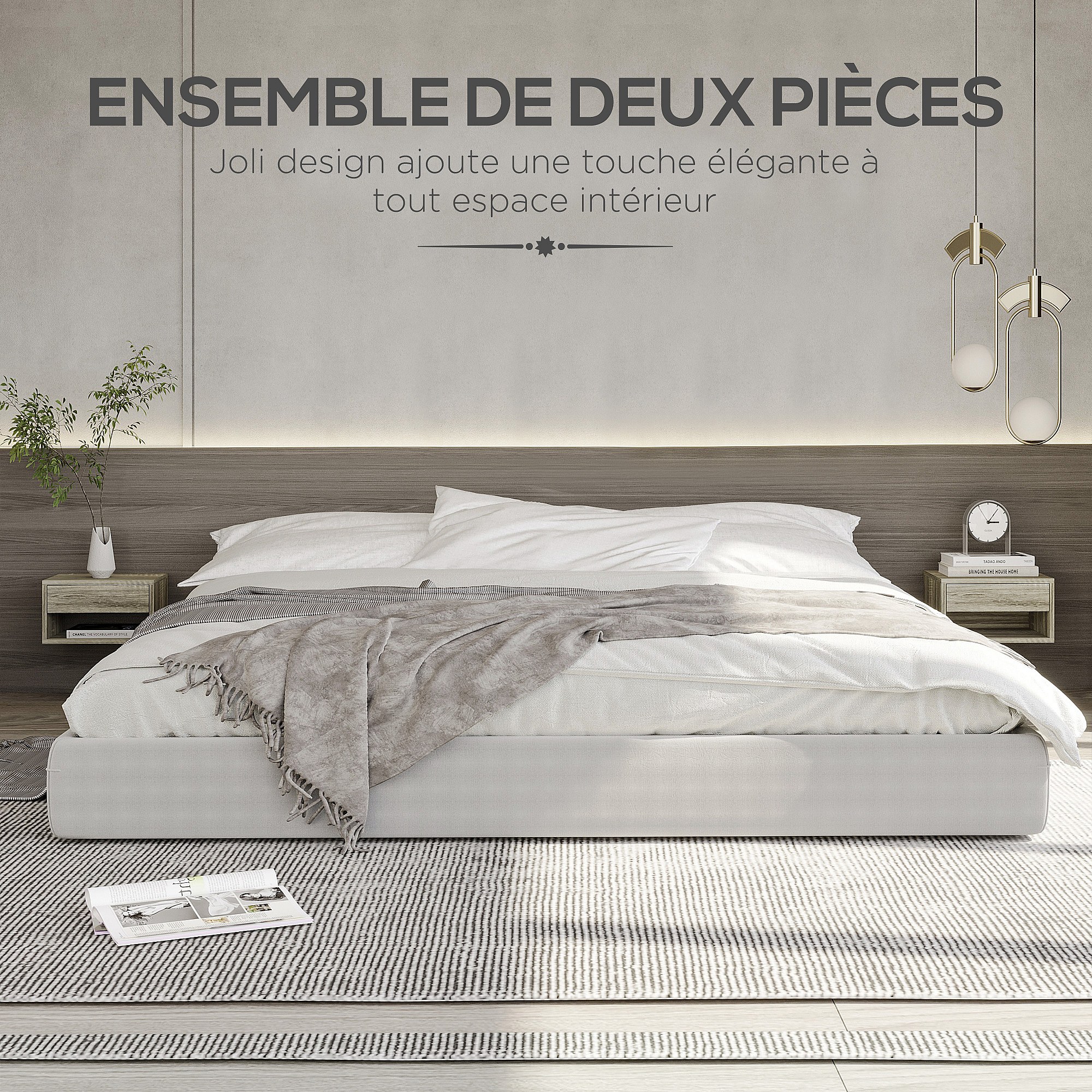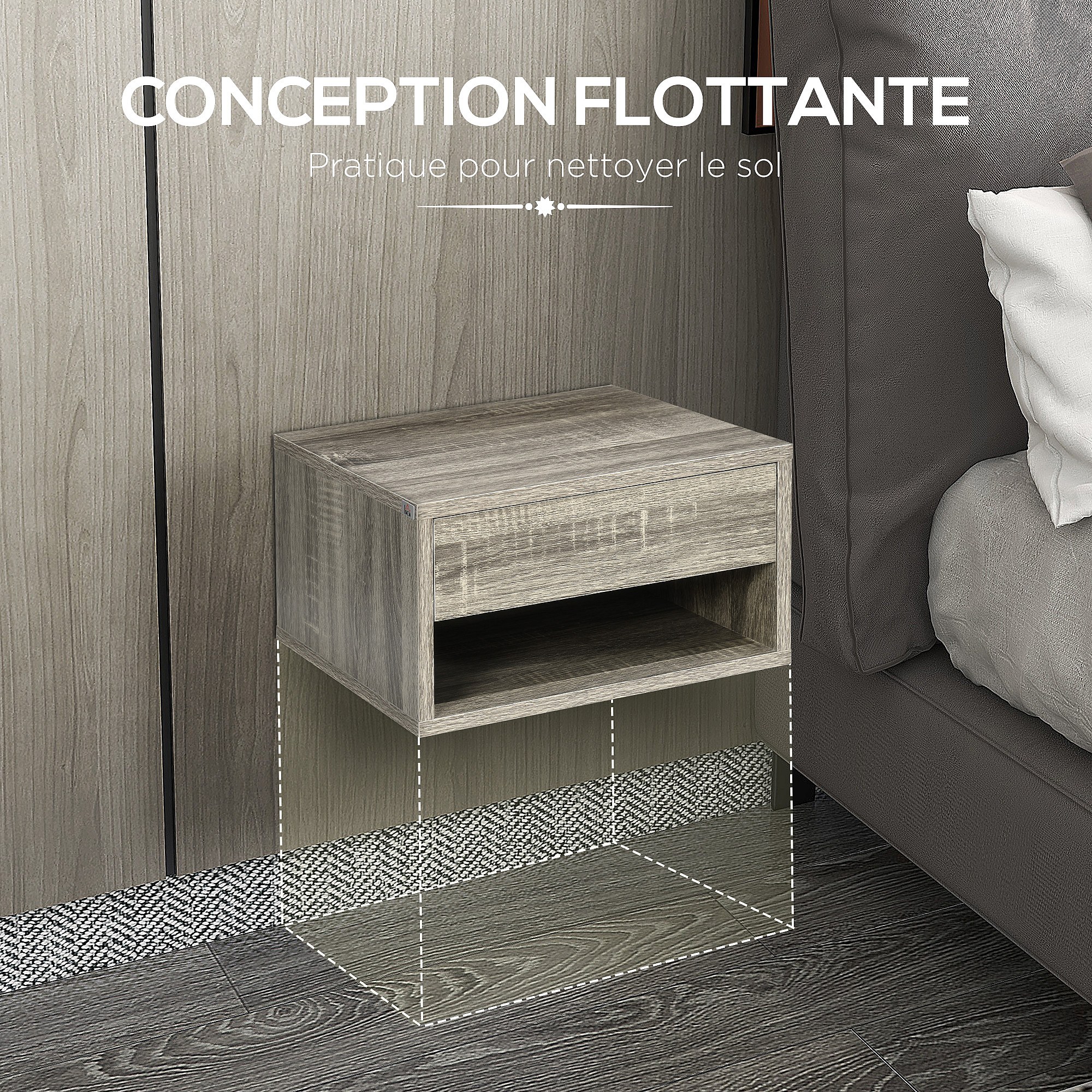 Lot de 2 chevets tables de nuit murales - tiroir coulissant, plateau - dim. 40L x 30l x 19H cm - panneaux aspect bois gris