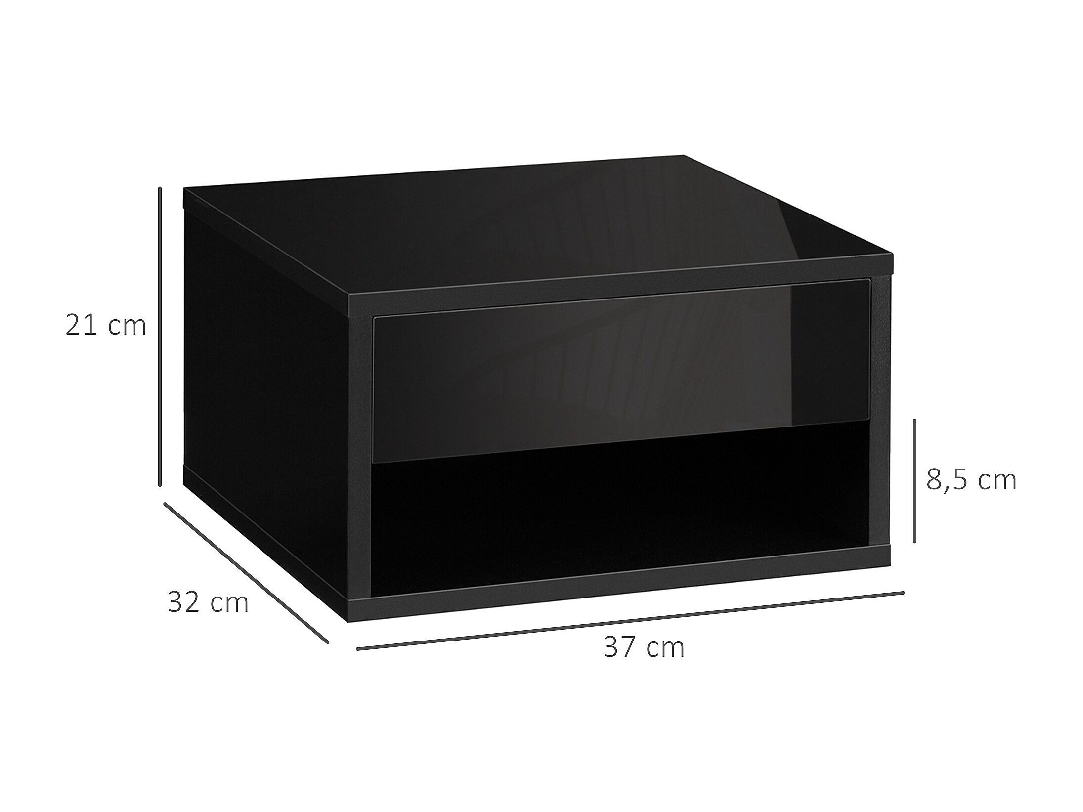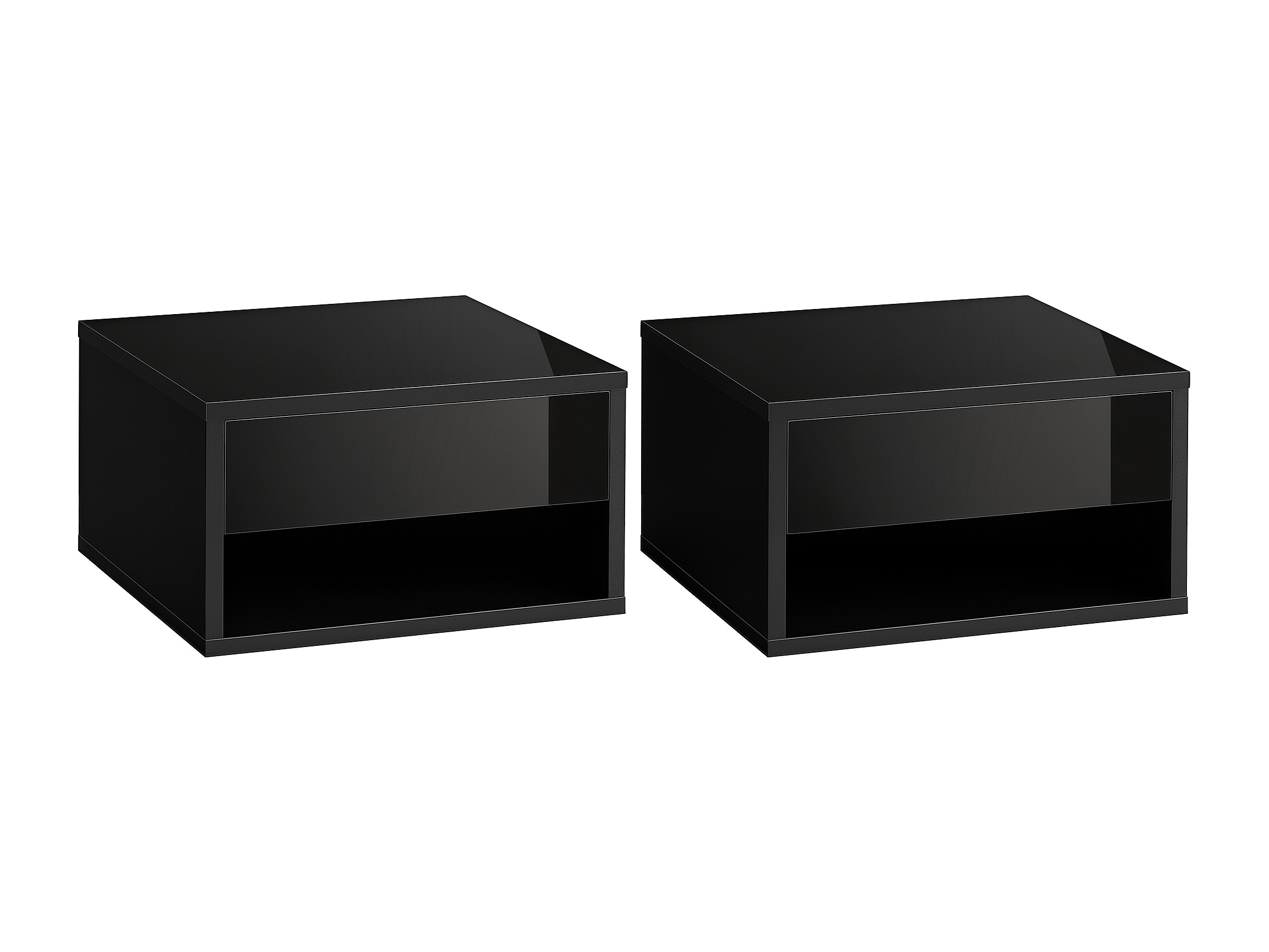 Lot de 2 chevets tables de nuit murales - tiroir coulissant, niche, plateau - dim. 37L x 32l x 21H cm - panneaux noir
