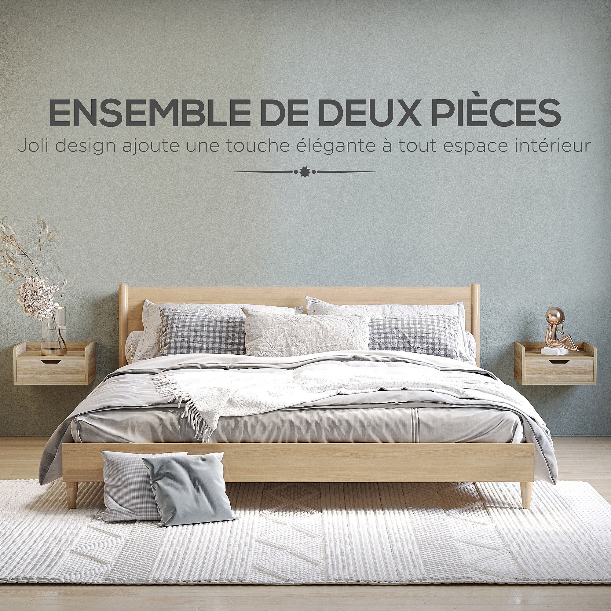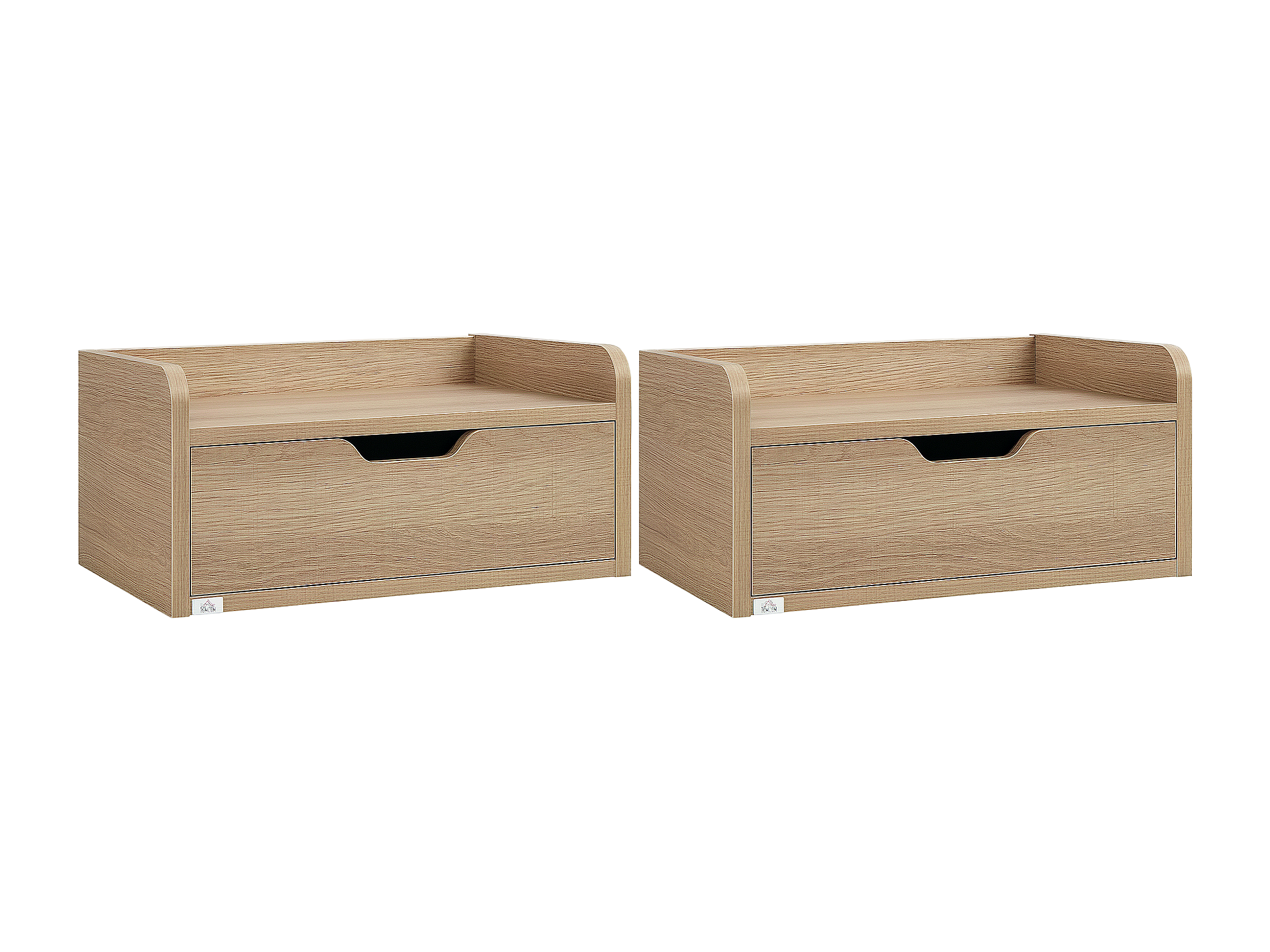 Lot de 2 chevets tables de nuit murales - tiroir coulissant, niche, plateau - dim. 37L x 32l x 21H cm - panneaux aspect chêne clair