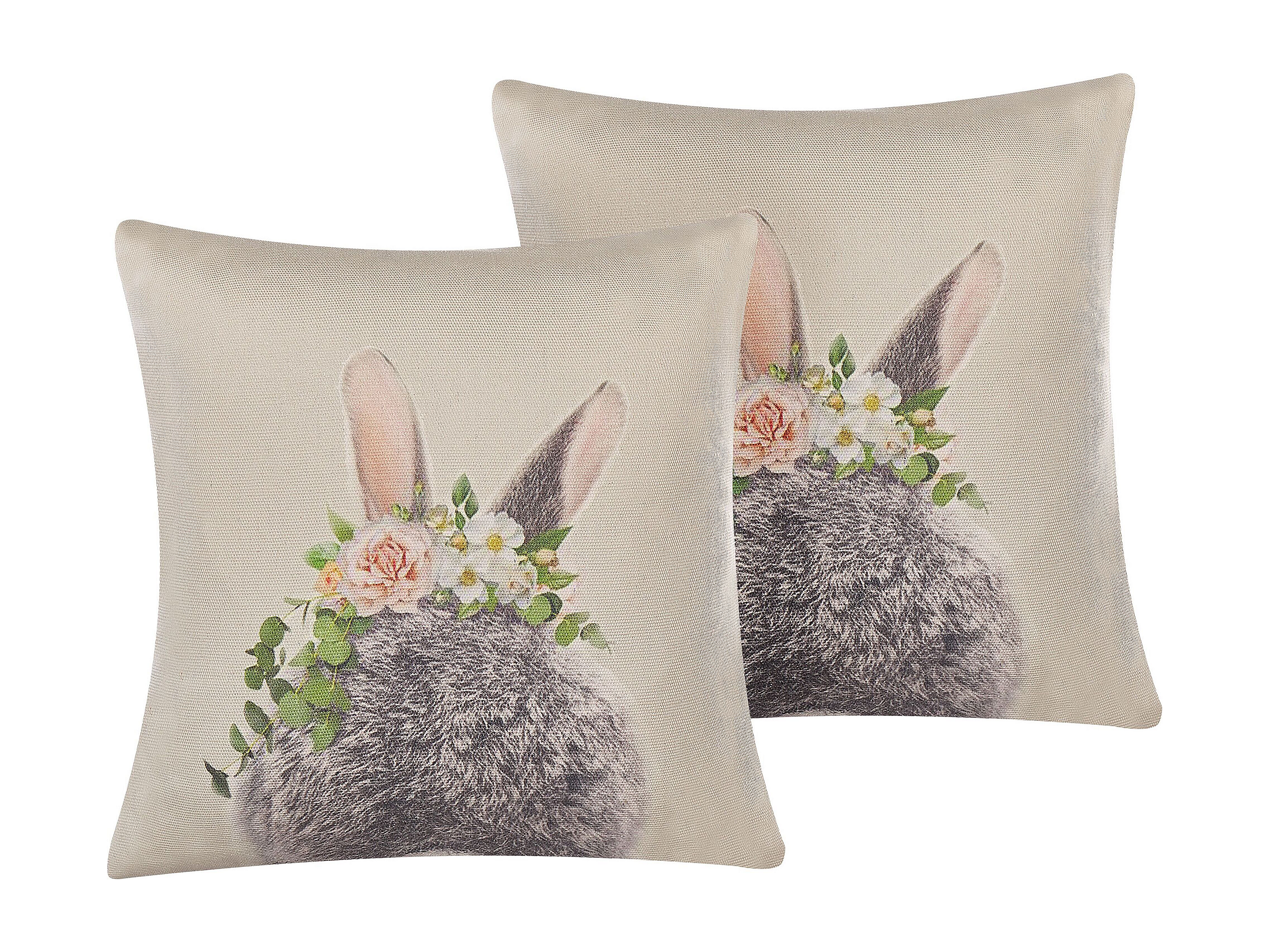 Lot de 2 coussins décoratifs QUERCUS 45 x 45 cm Taupe Motif animal