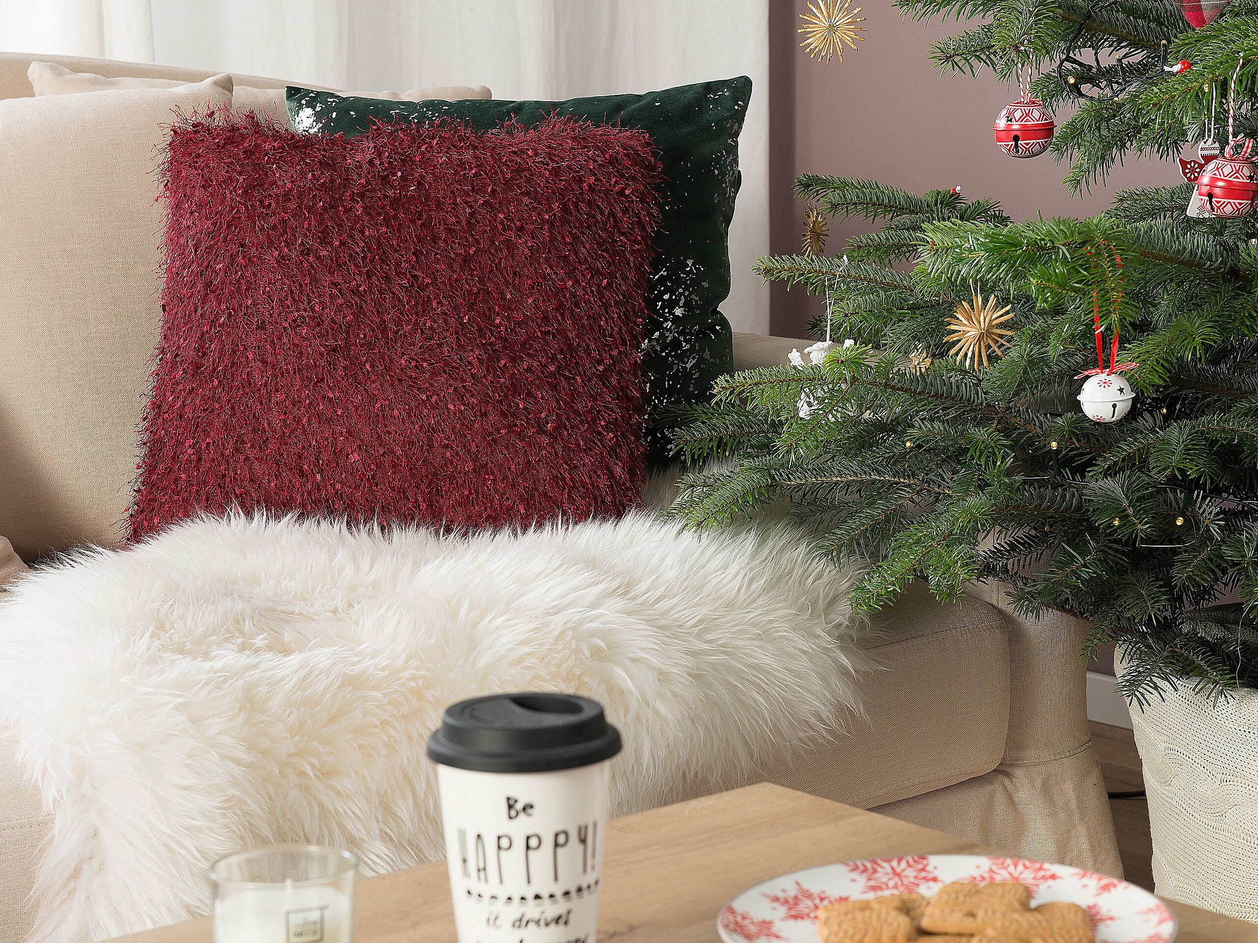 Lot de 2 coussins décoratifs HELLEBORE 45 x 45 cm Rouge foncé Unicolore