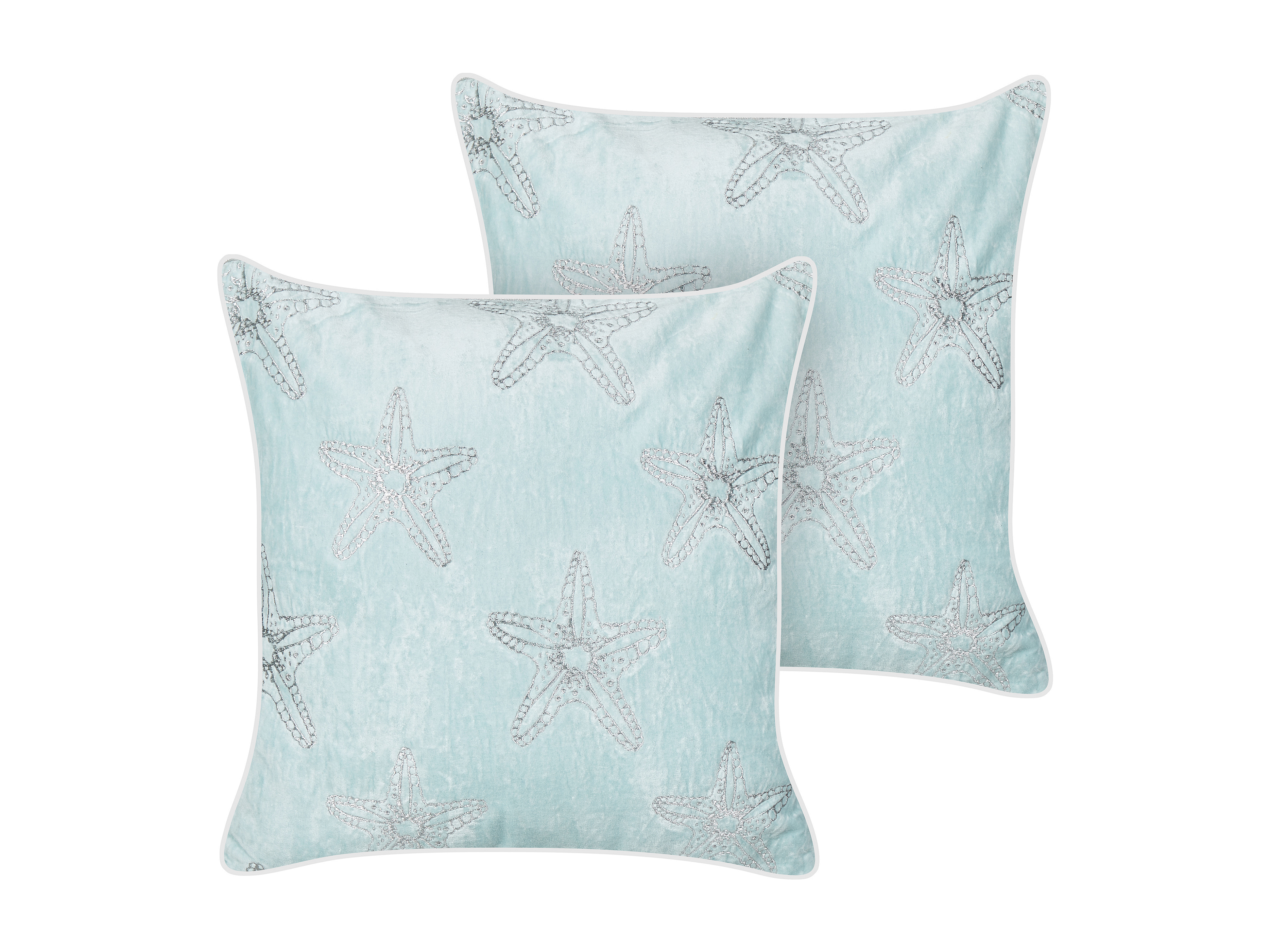 Lot de 2 coussins décoratifs LEATHESIA Velours 45 x 45 cm Bleu clair Motif abstrait