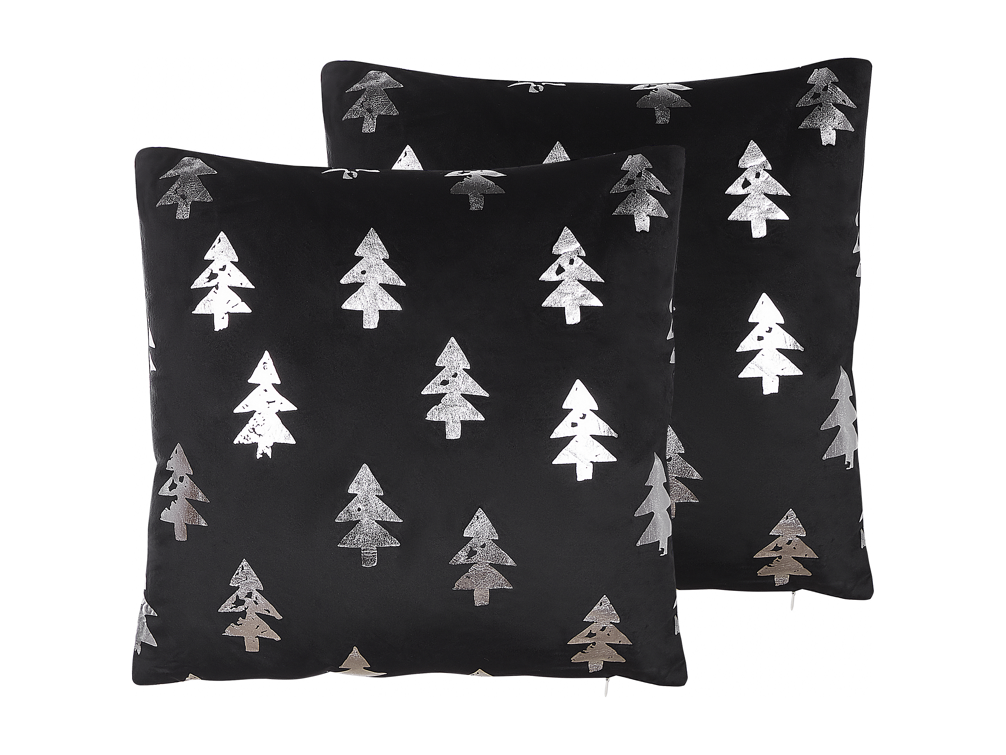 Lot de 2 coussins décoratifs CUPID Velours 45 x 45 cm Noir Motif de Noël