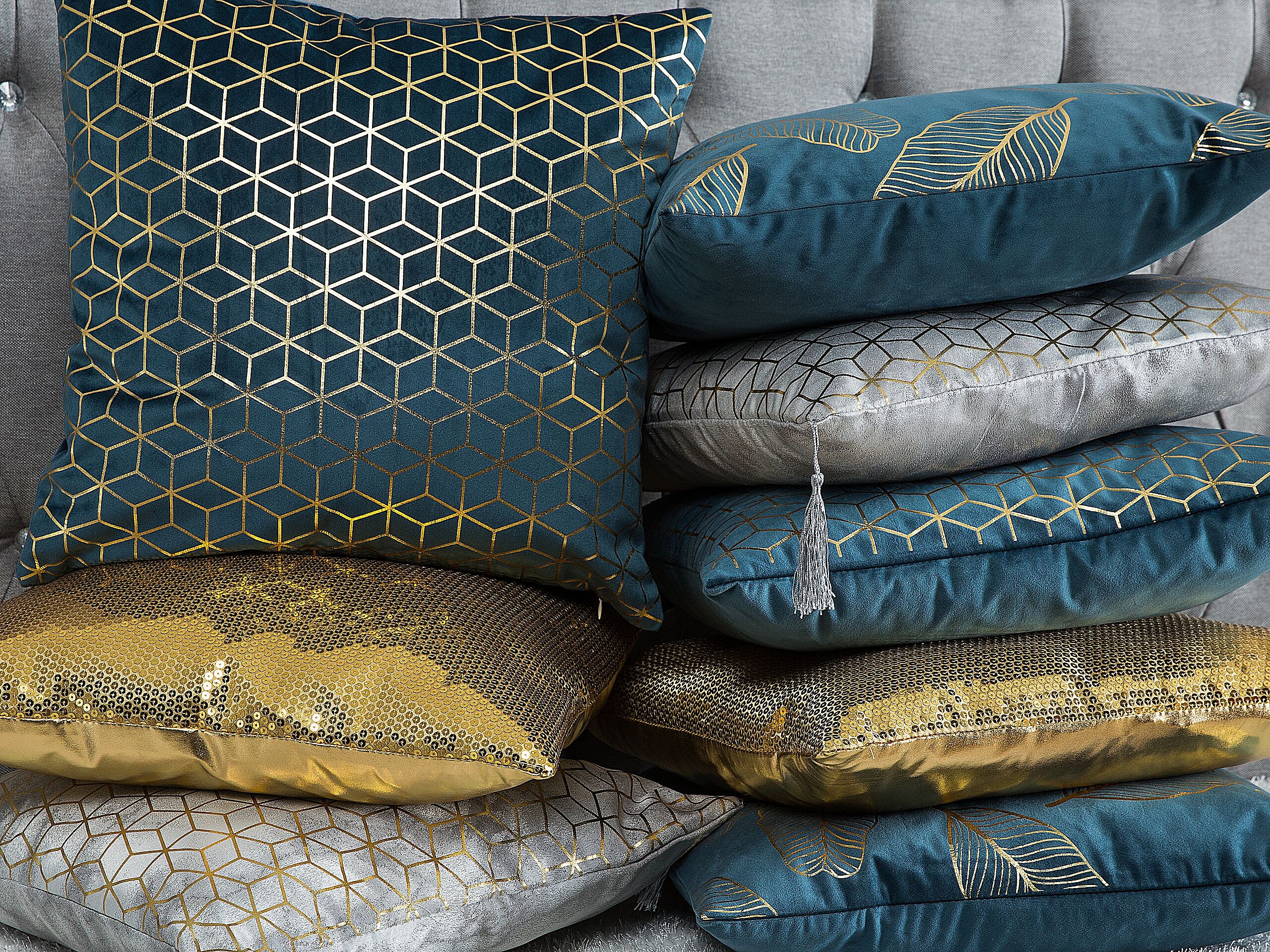 Lot de 2 coussins décoratifs YARROW Velours 45 x 45 cm Bleu paon Motif géométrique