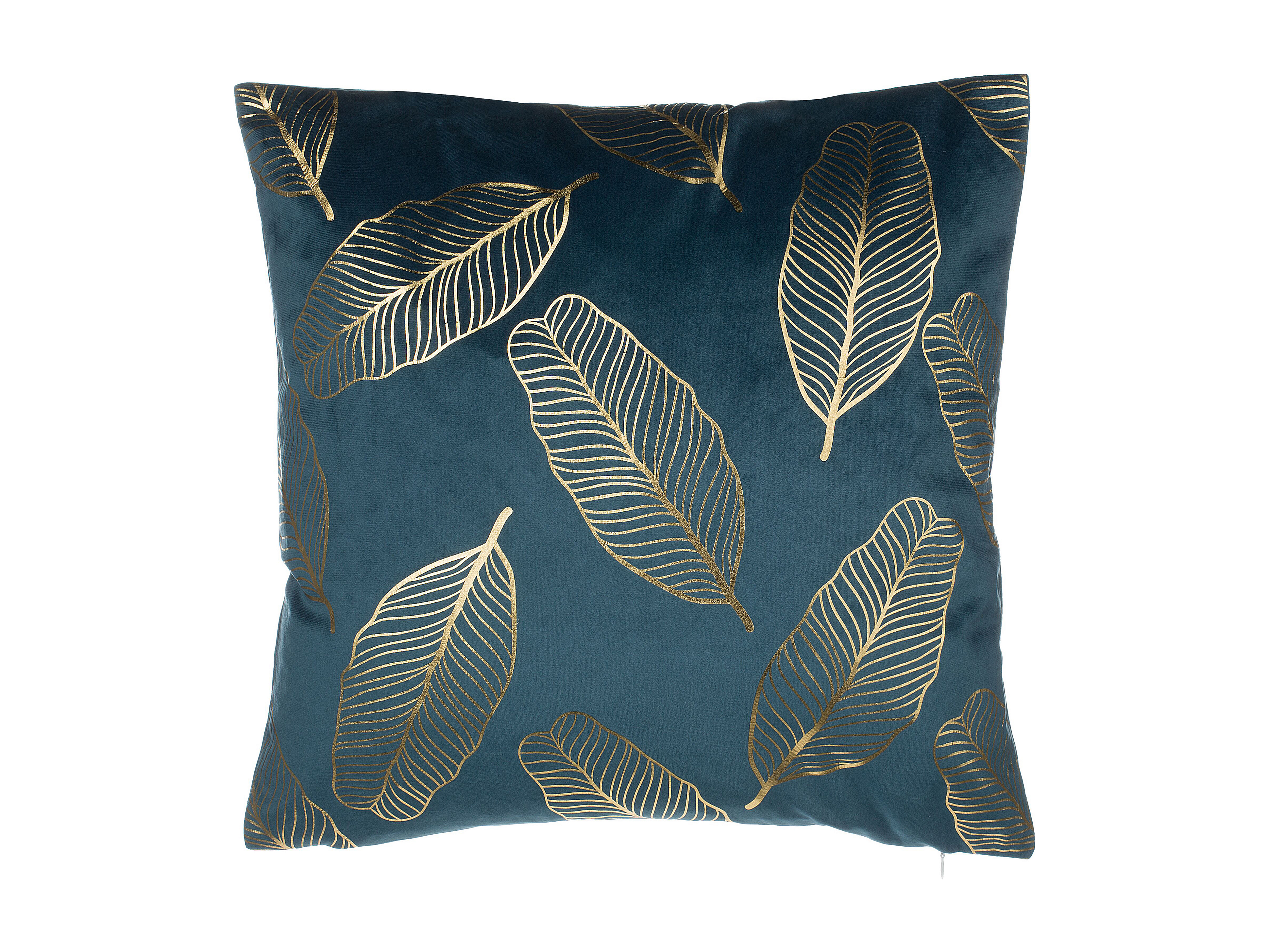 Lot de 2 coussins décoratifs FREESIA Velours 45 x 45 cm Bleu paon Motif de plante