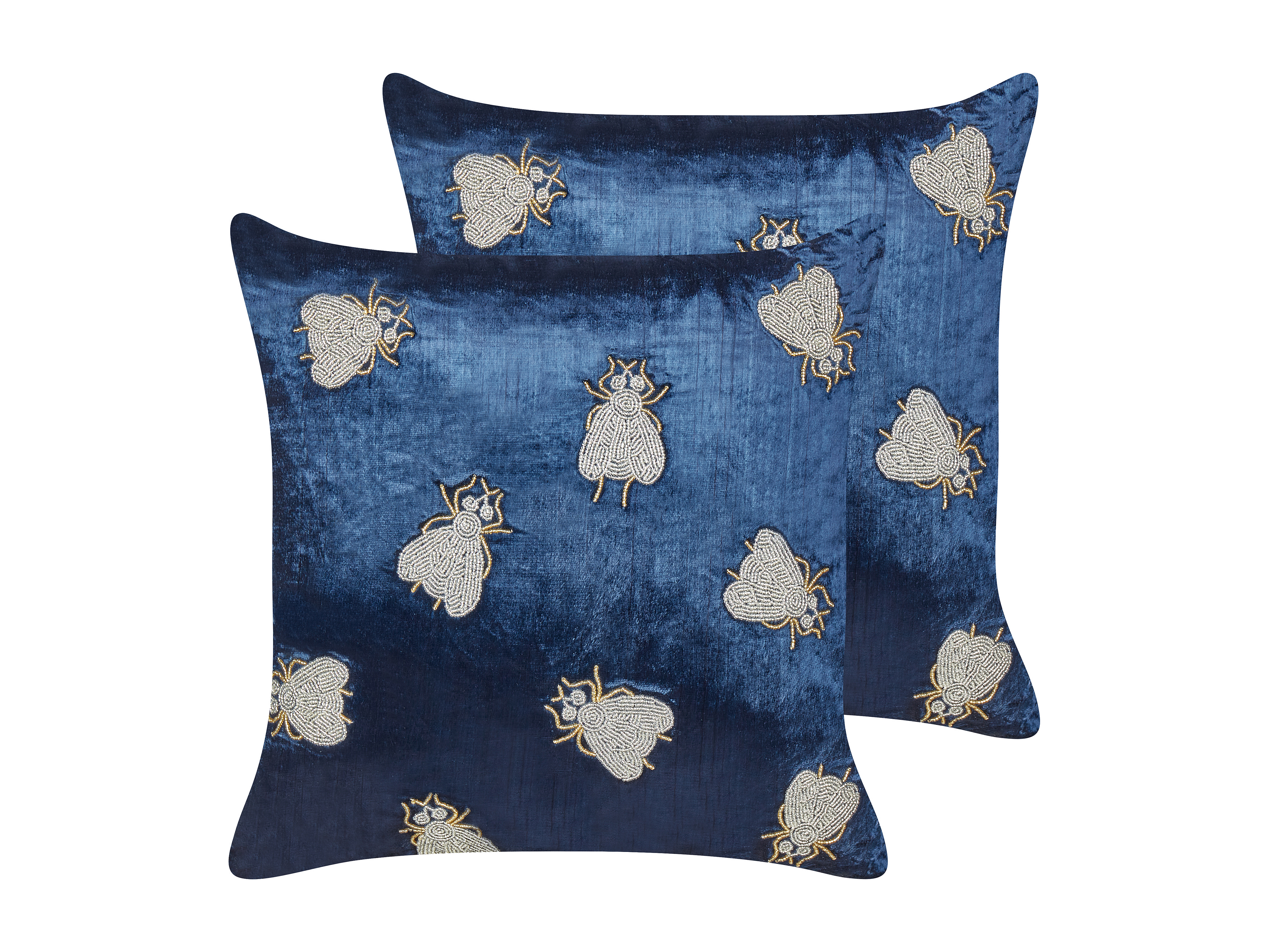 Lot de 2 coussins décoratifs PENTAS Velours 45 x 45 cm Bleu marine Motif animal