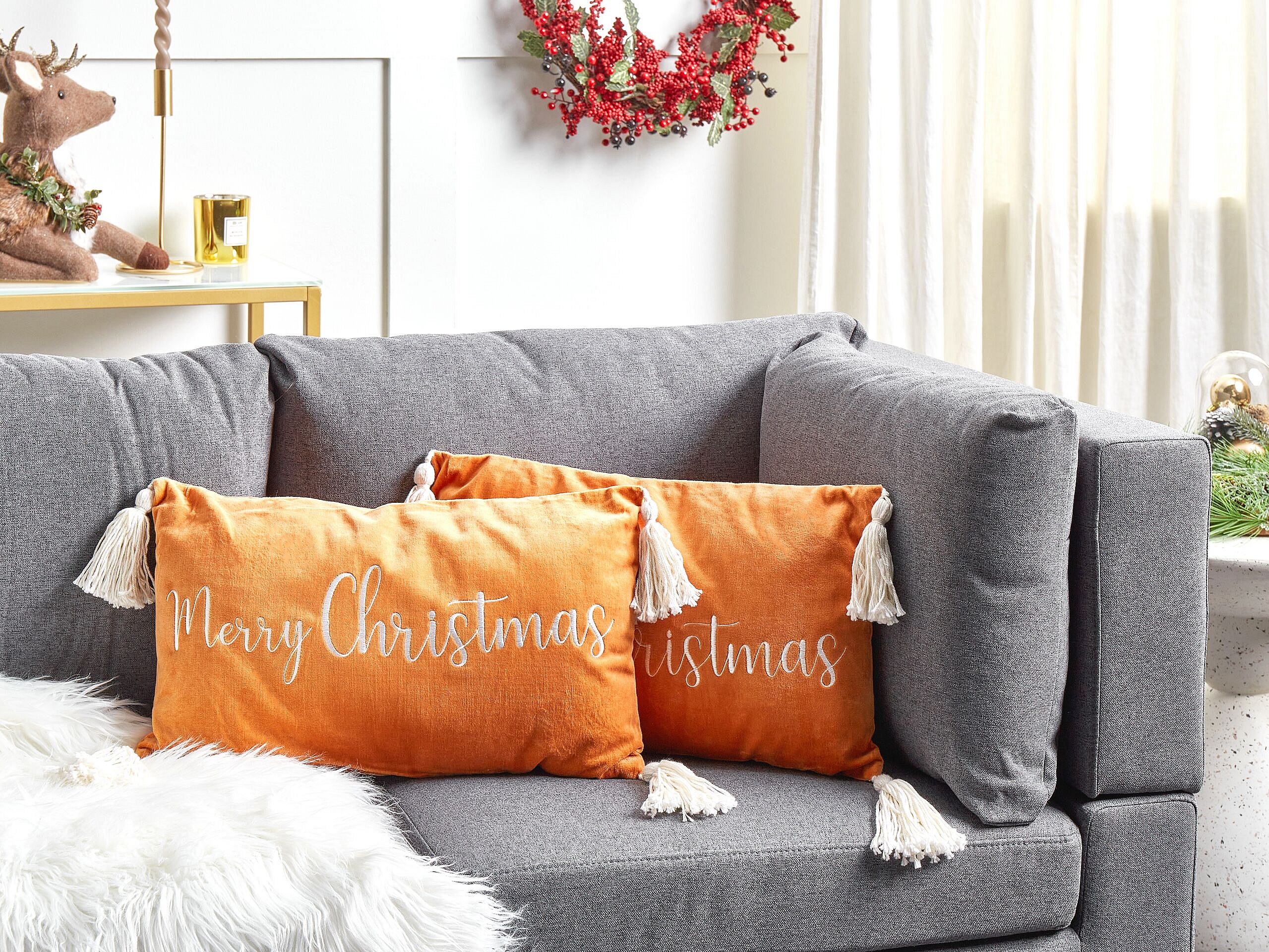 Lot de 2 coussins décoratifs LITHOPS Velours 30 x 50 cm Orange Motif de Noël