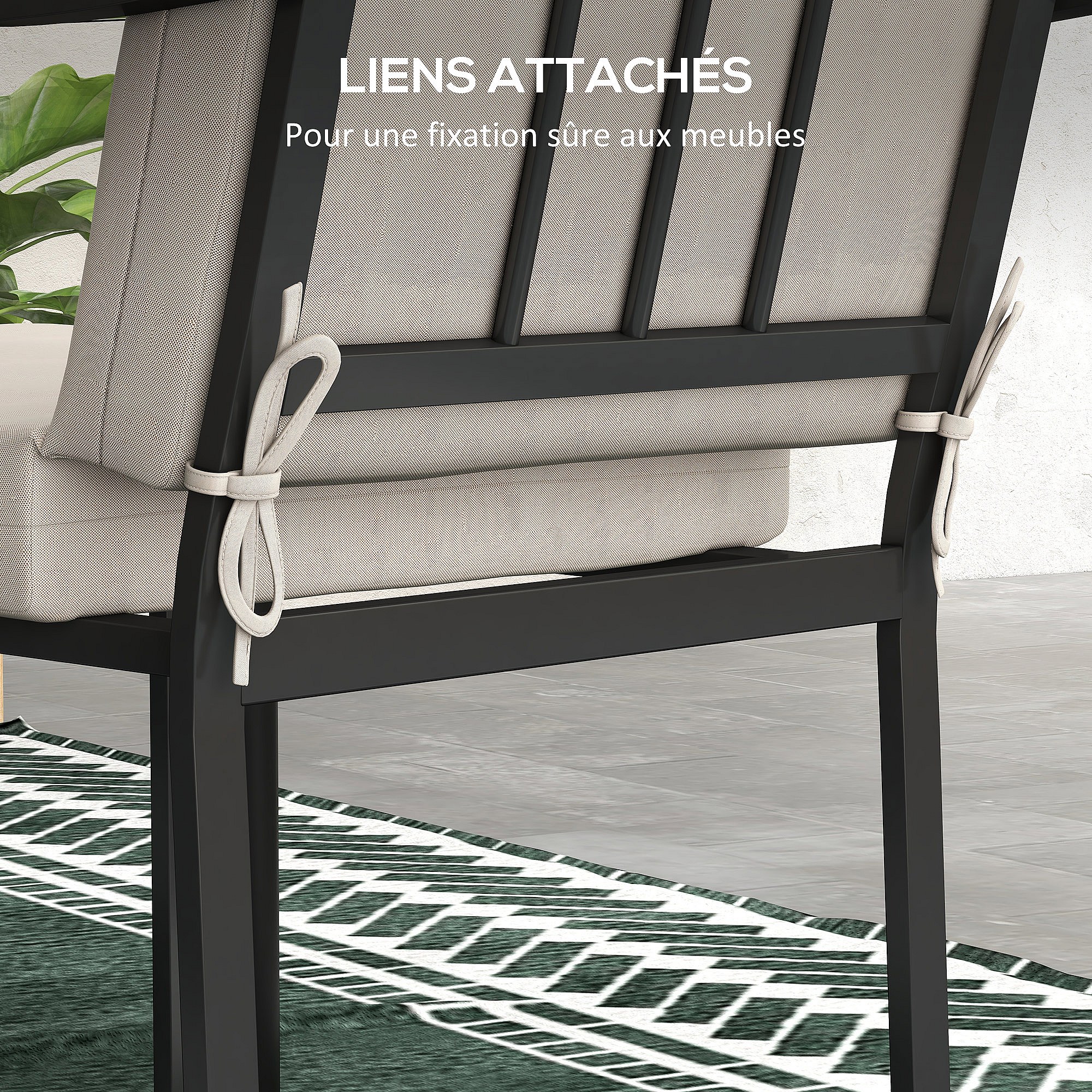 Lot de 2 coussins galettes de chaise de jardin - dim. 112L x 51l x ép. 8 cm - cordons attache - polyester déperlant beige