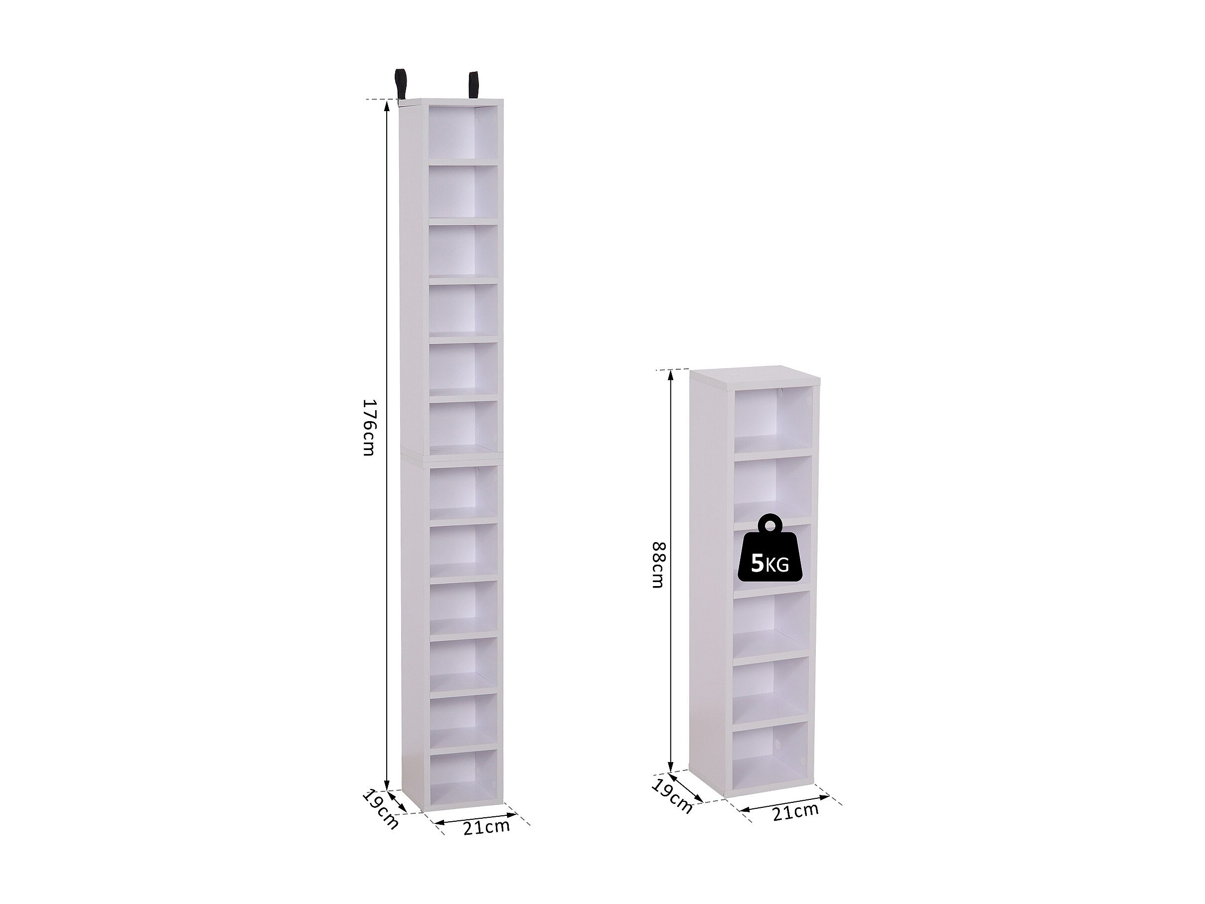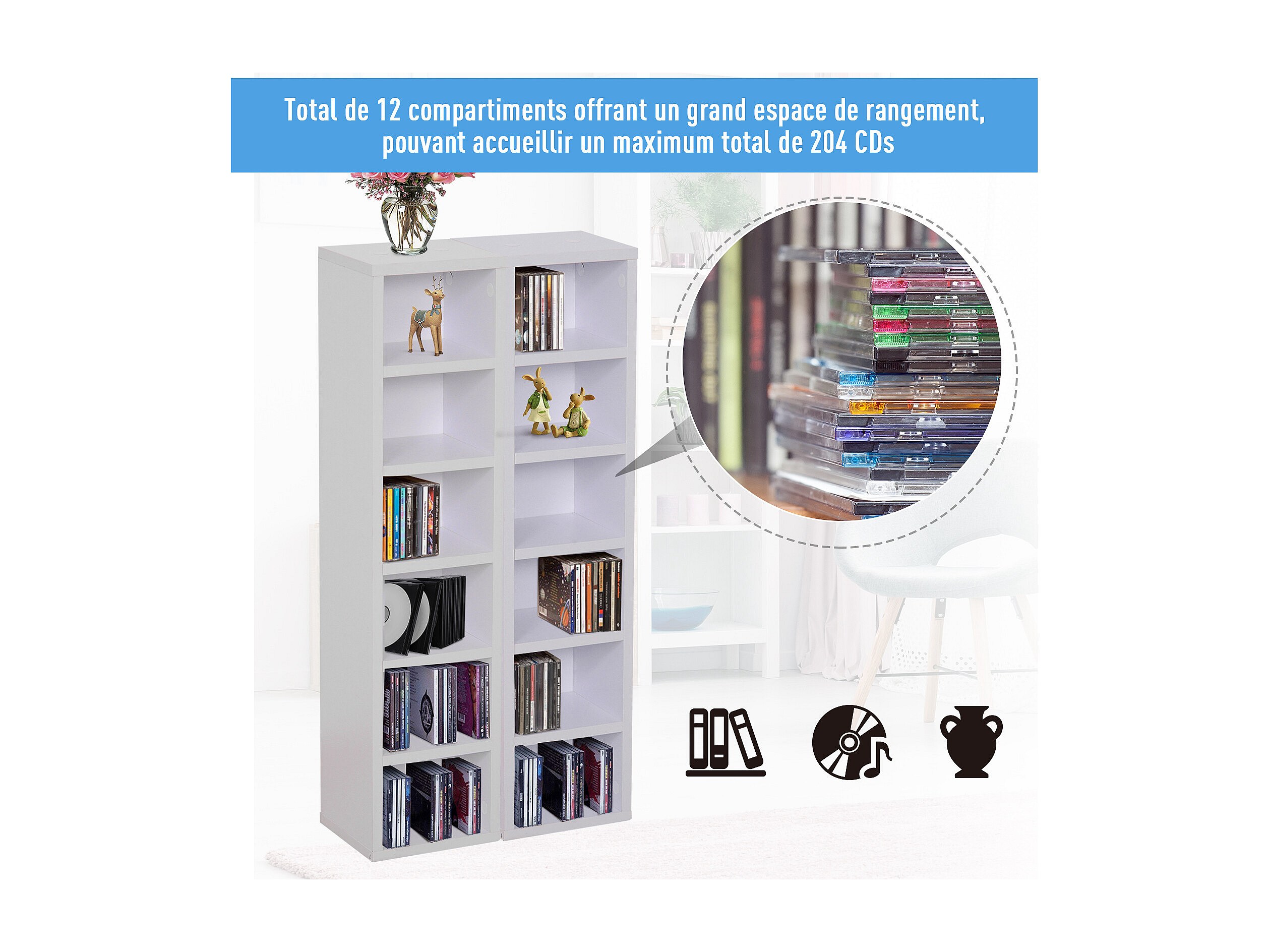 Lot de 2 étagères colonnes armoire de rangement CD-DVD 6 + 6 compartiments dim. 21L x 19l x 88H cm capacité max. 204 CD blanc