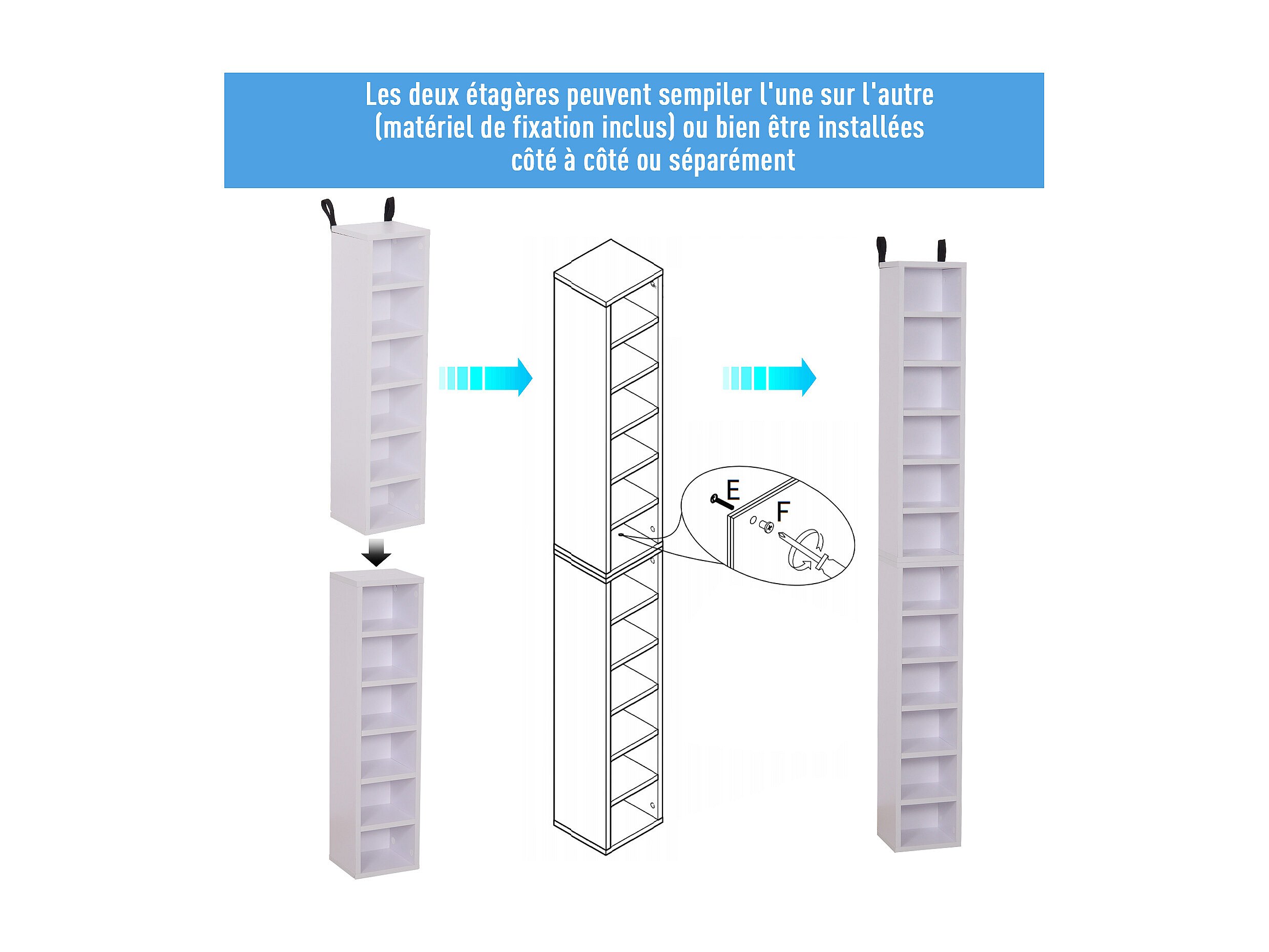 Lot de 2 étagères colonnes armoire de rangement CD 6 + 6 compartiments blanc dim. 21L x 22,5l x 88,5H cm