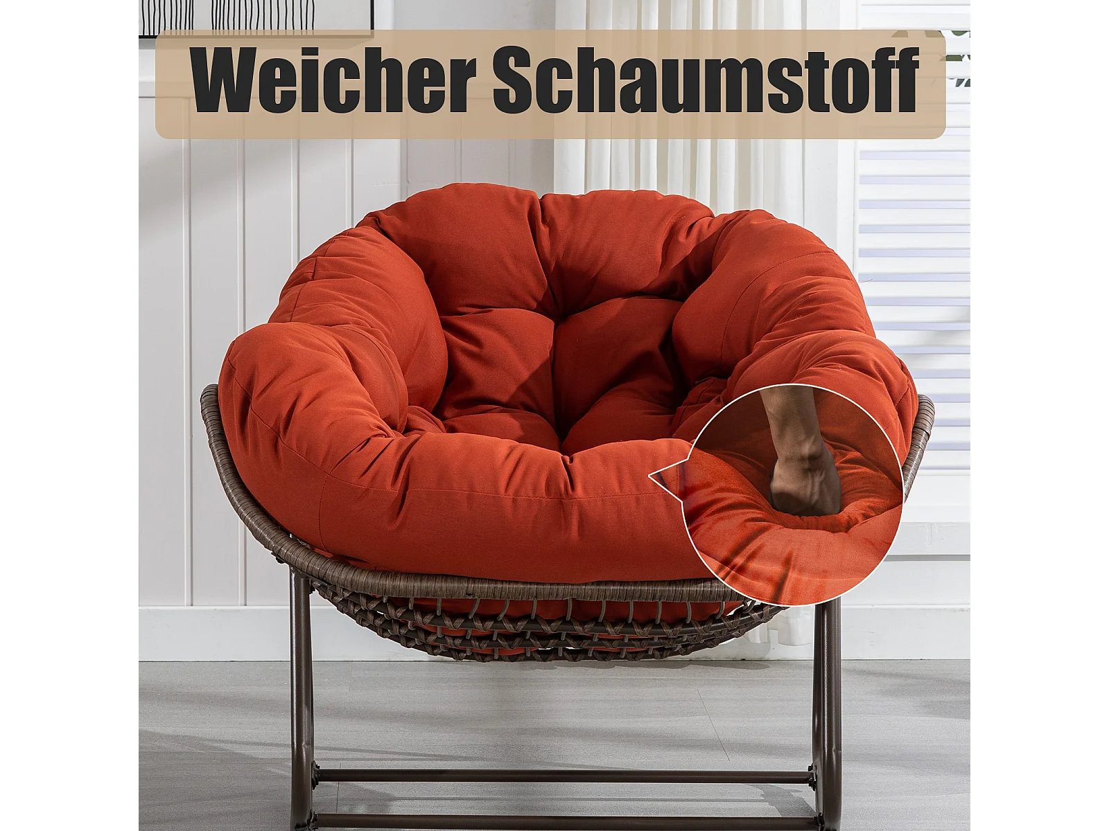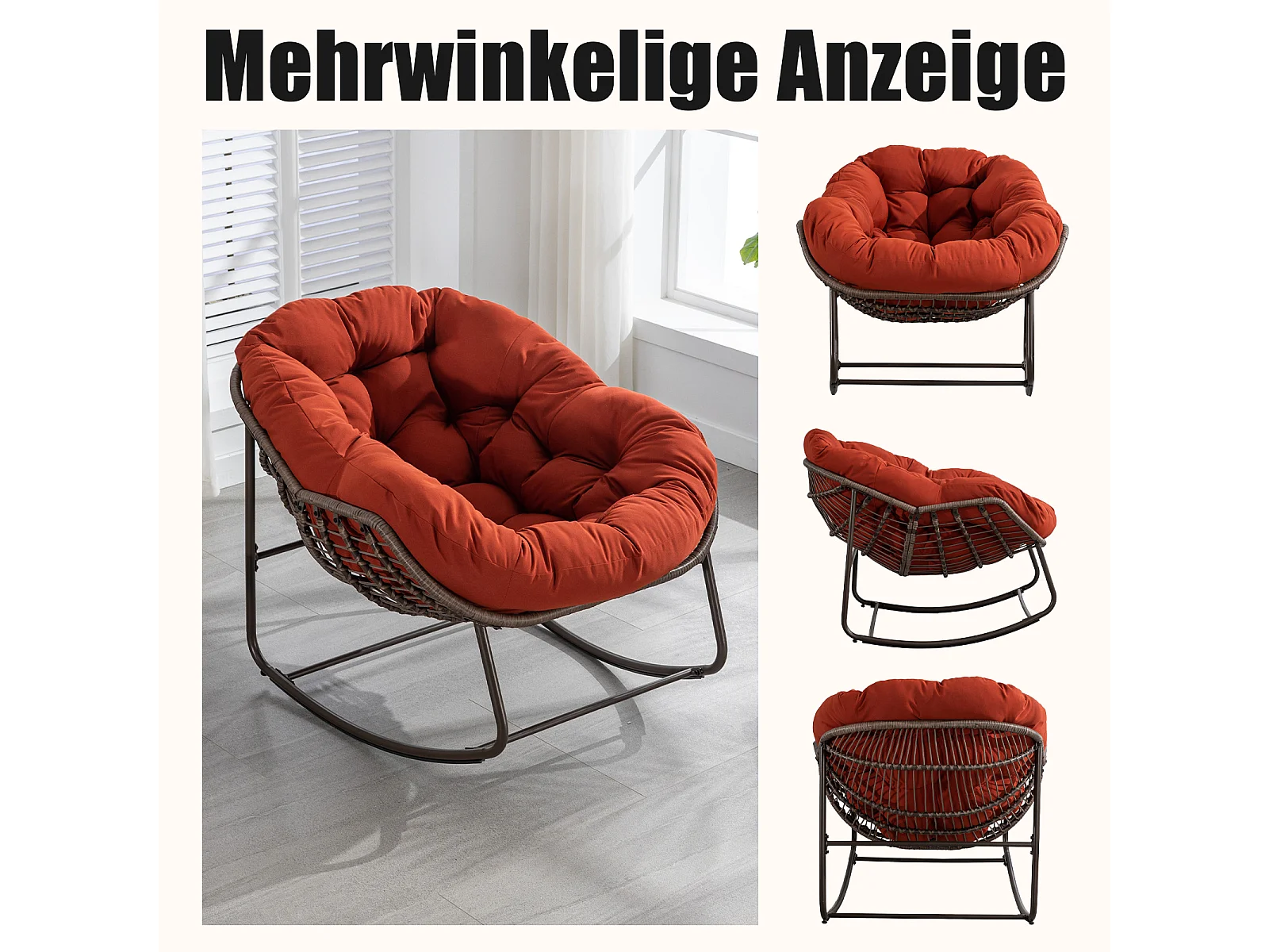 Lot de 2 Fauteuils à Bascule en Rotin Naturel – Forme Œuf et Coussins Orange – Confortable pour Salon, Véranda ou Chambre