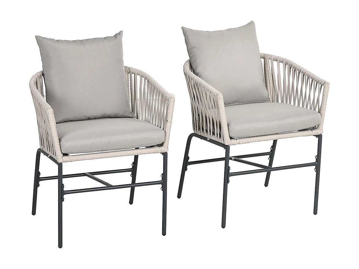 Lot de 2 fauteuils de jardin avec coussins métal cordes PE noir gris