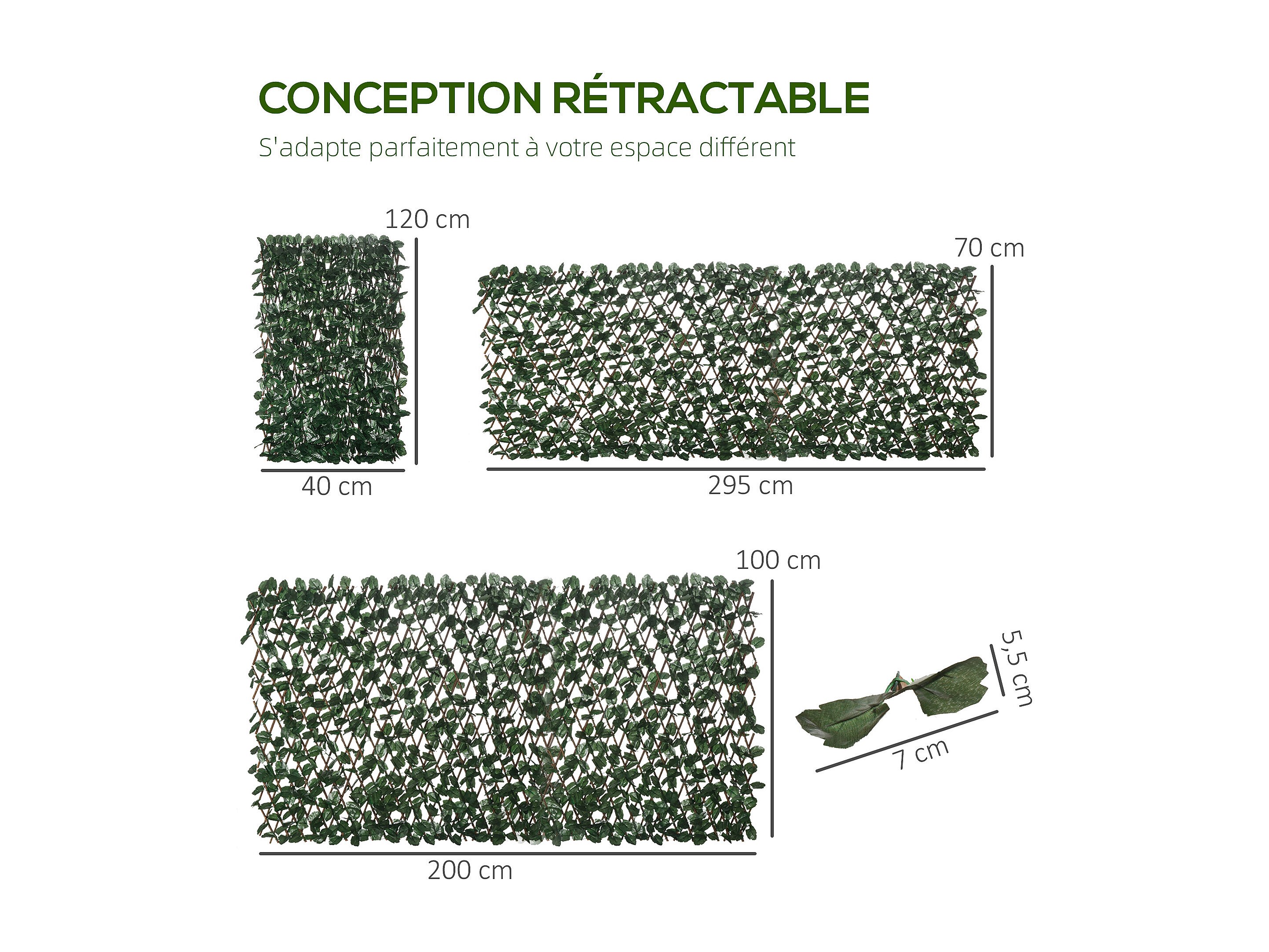 Lot de 2 haies artificielles feuilles de lierre - treillis extensible - brise-vue canisse végétale feuillage réaliste osier polyester