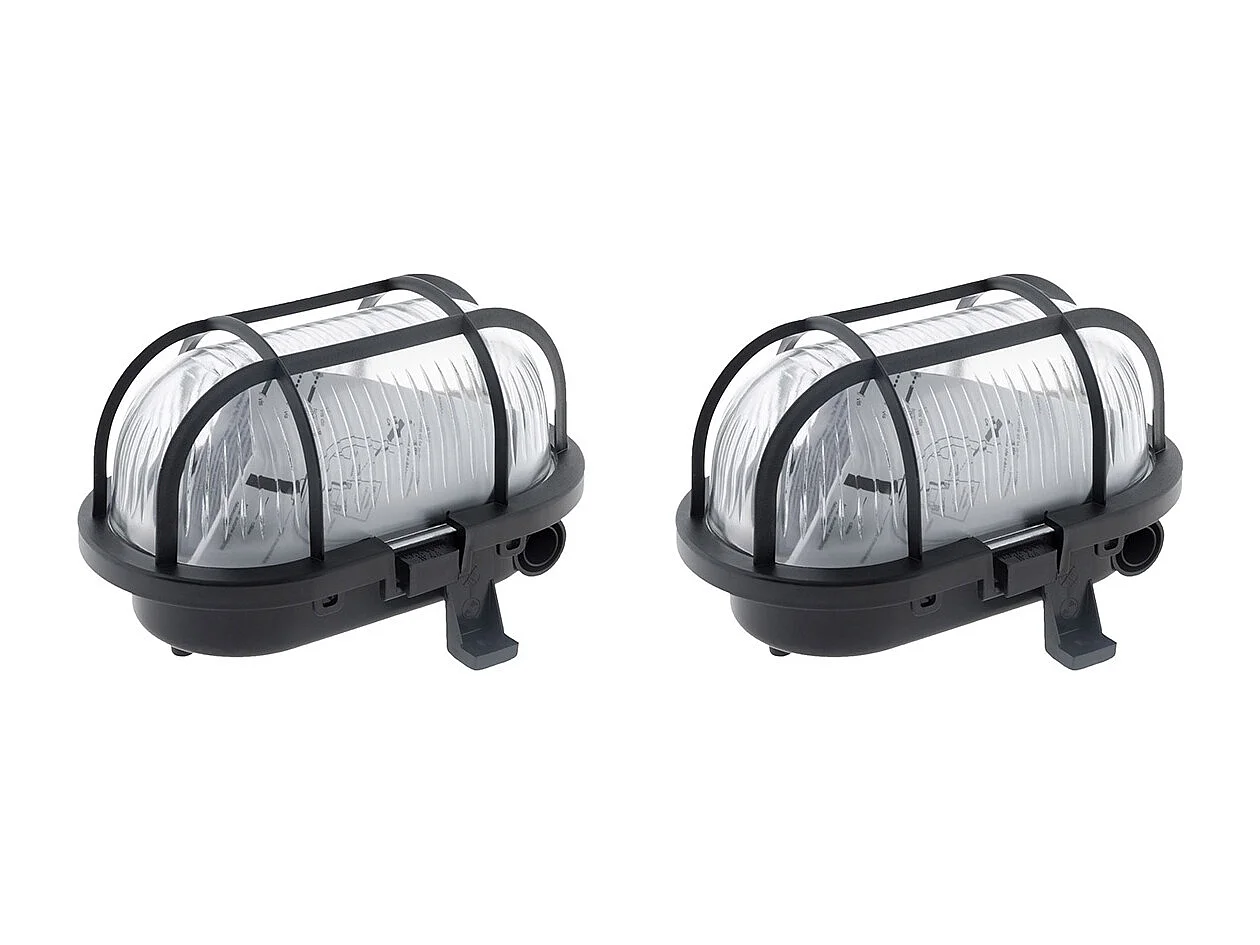 Lot de 2 hublots ovales 60W IP44 E27 Classe II - Noir - Zenitech