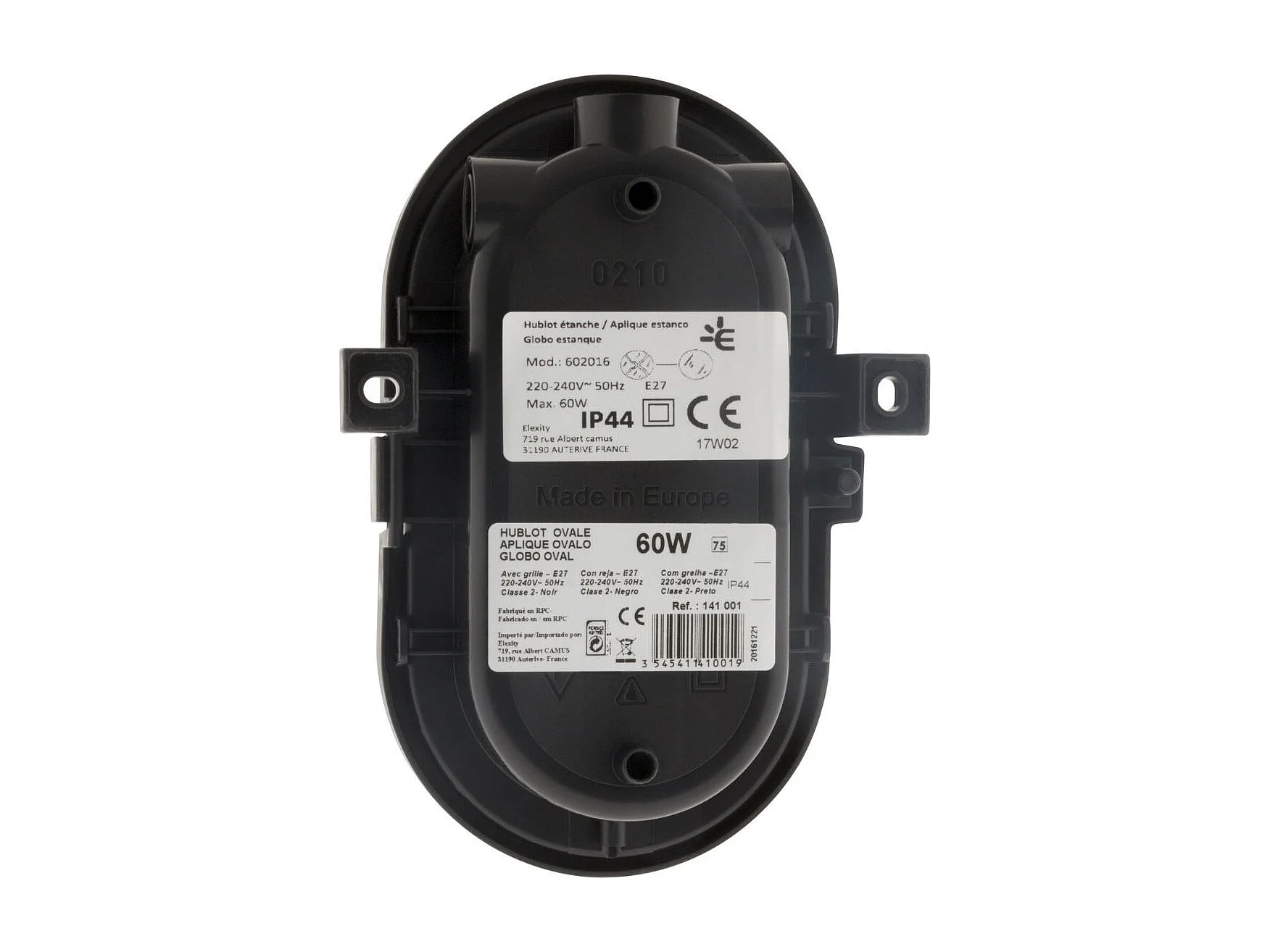 Hublot ovale 60W IP44 E27 Classe II - Noir - Zenitech