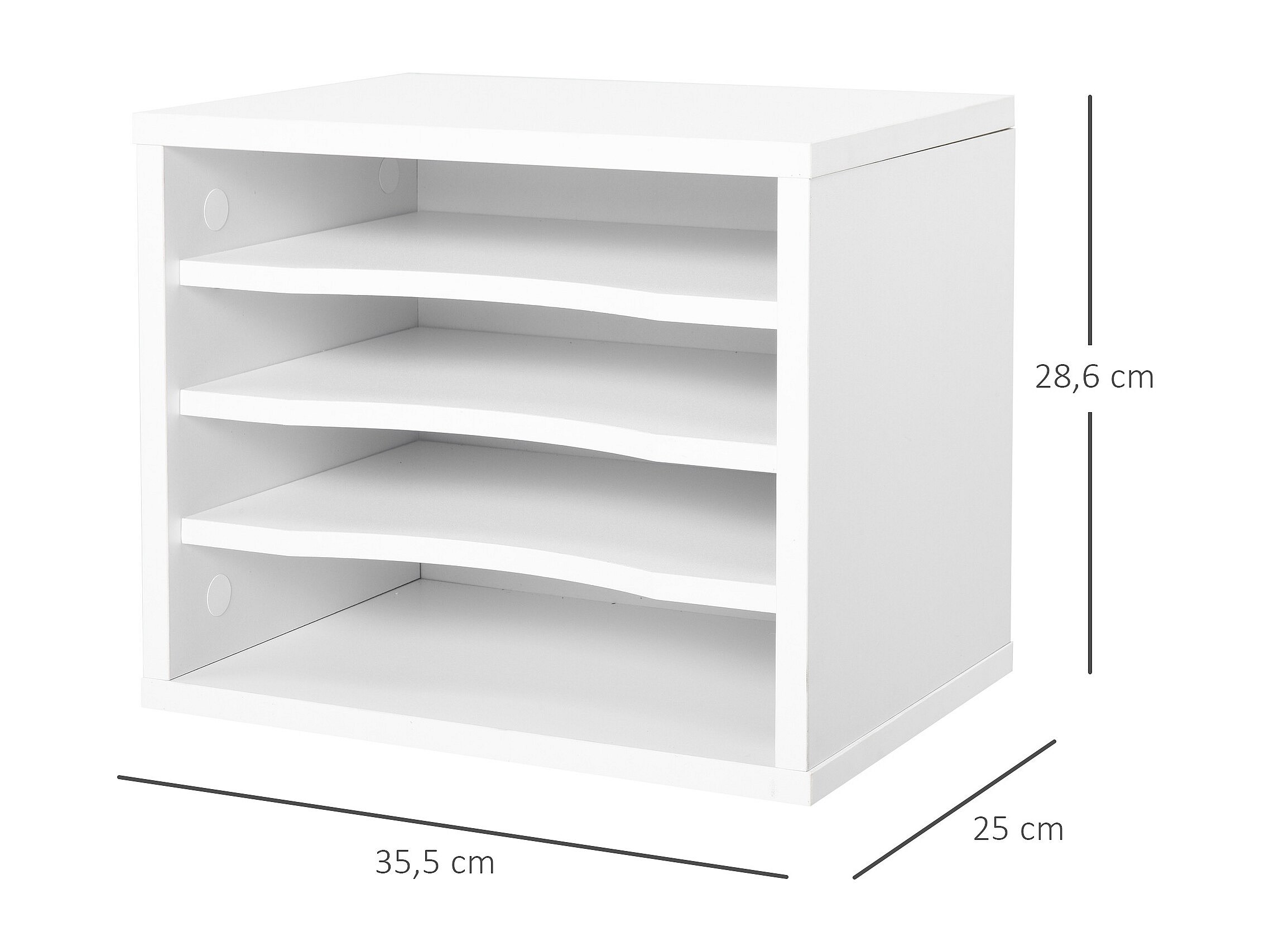 Lot de 2 organiseurs bureau bois blanc avec 4 couches fournitures support d'imprimante dim. 35,5L x 25l x 28,6H cm