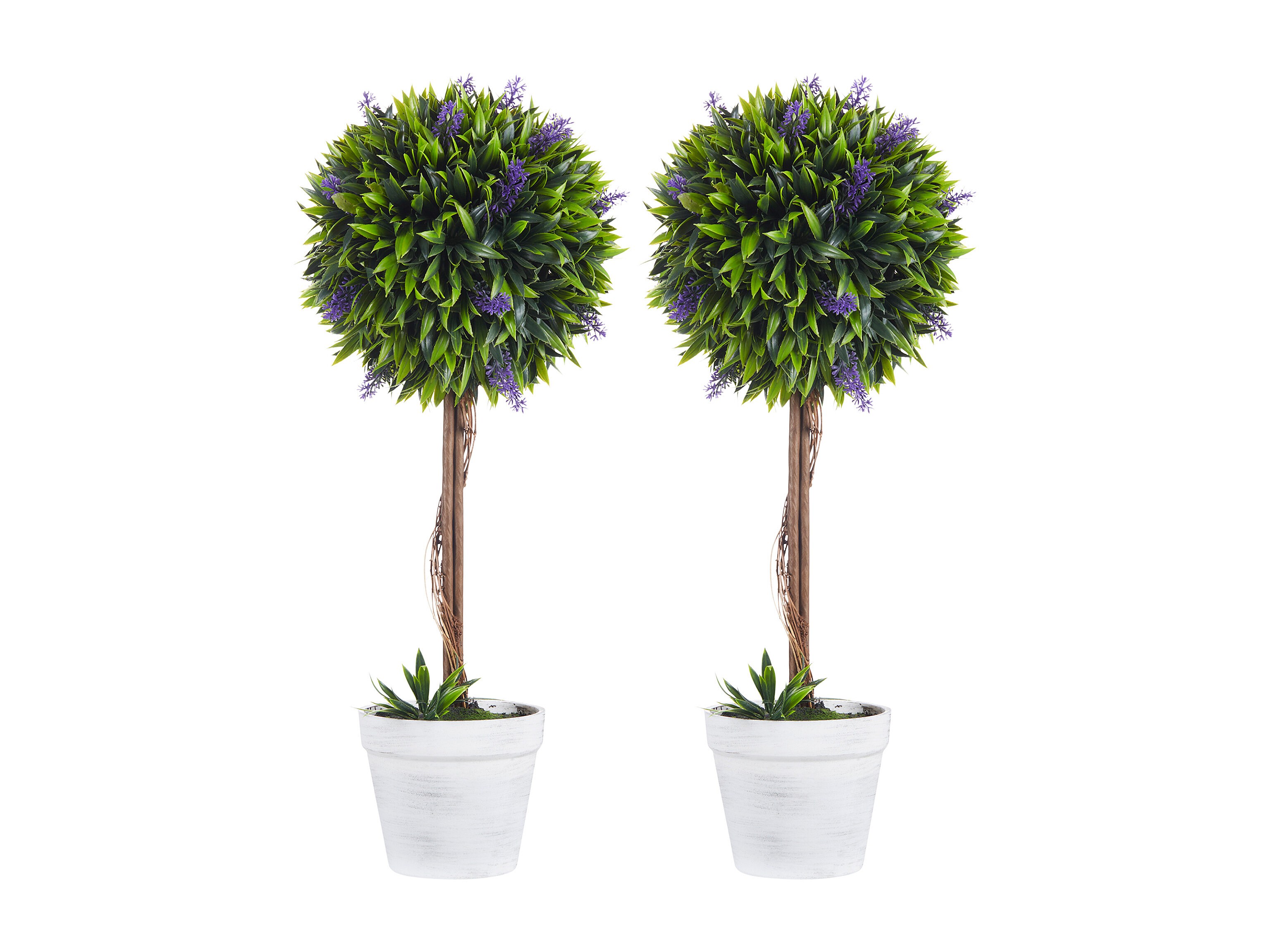 Lot de 2 plantes artificielles avec fleurs de lavande arbre artificiel tronc et pot inclus - hauteur 60 cm intérieur et extérieur vert