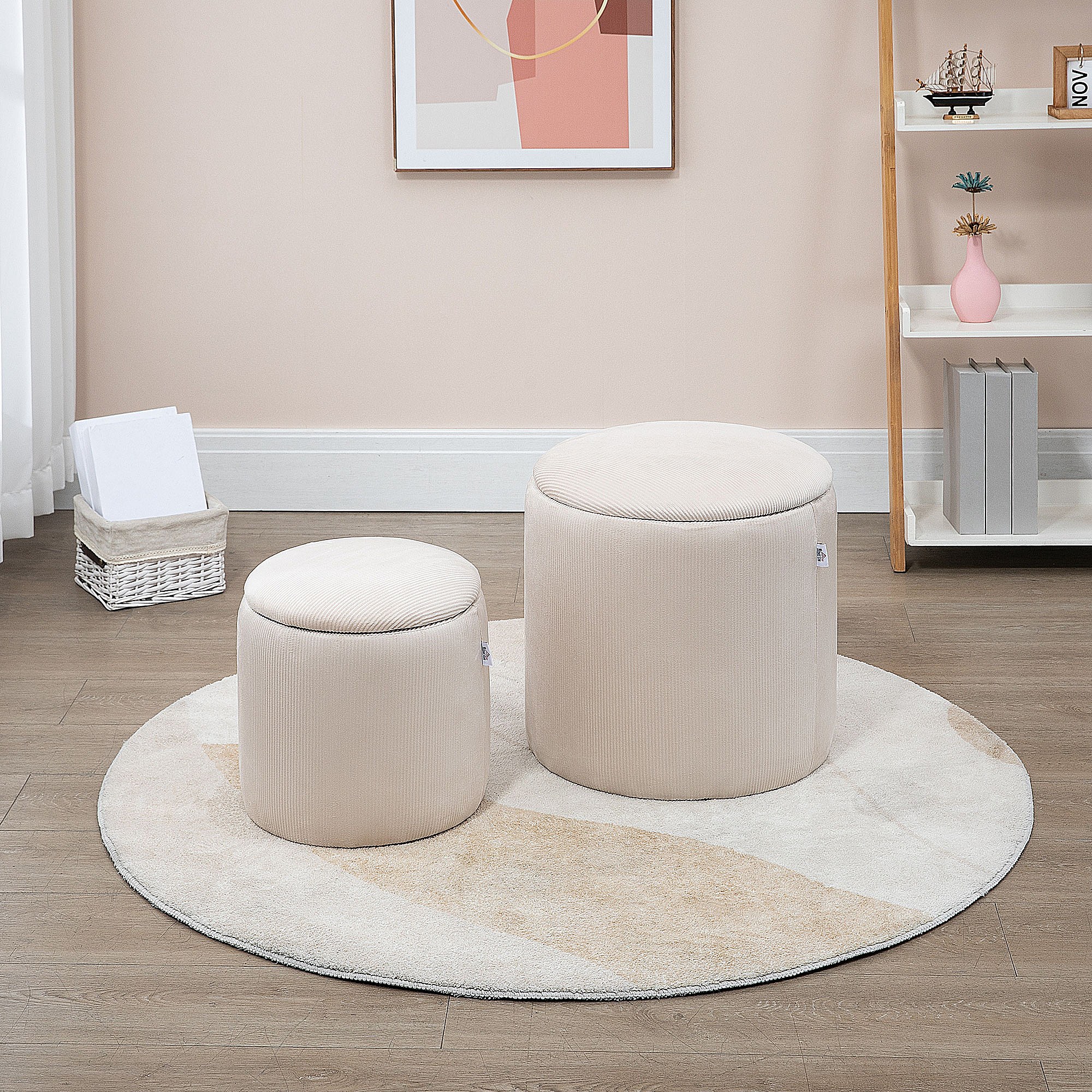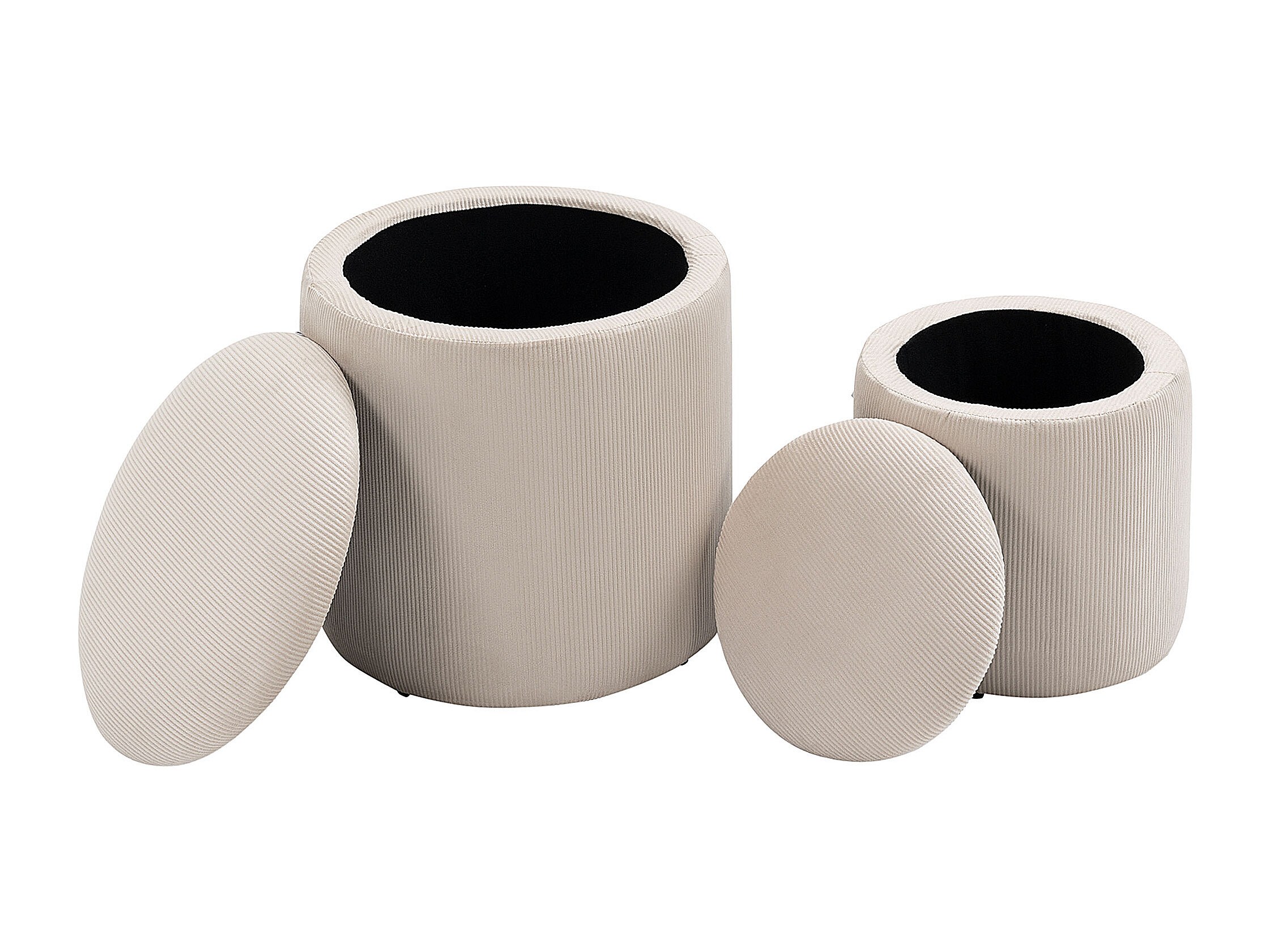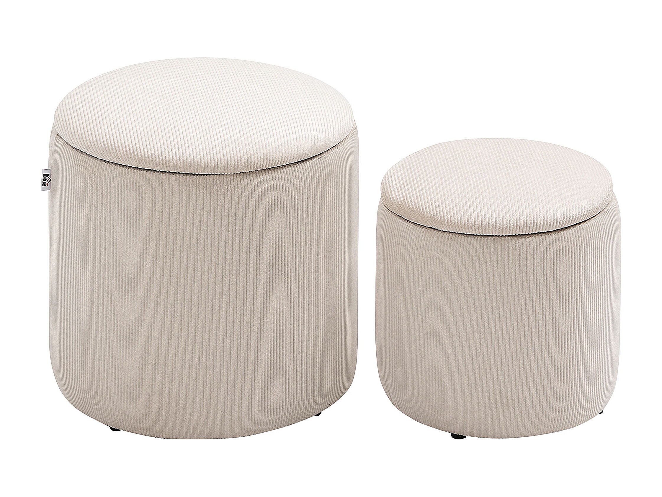 Lot de 2 poufs velours cotelé - poufs coffres 2 en 1 - poufs emboitables - Ø 40 et 30 cm - tissu crème