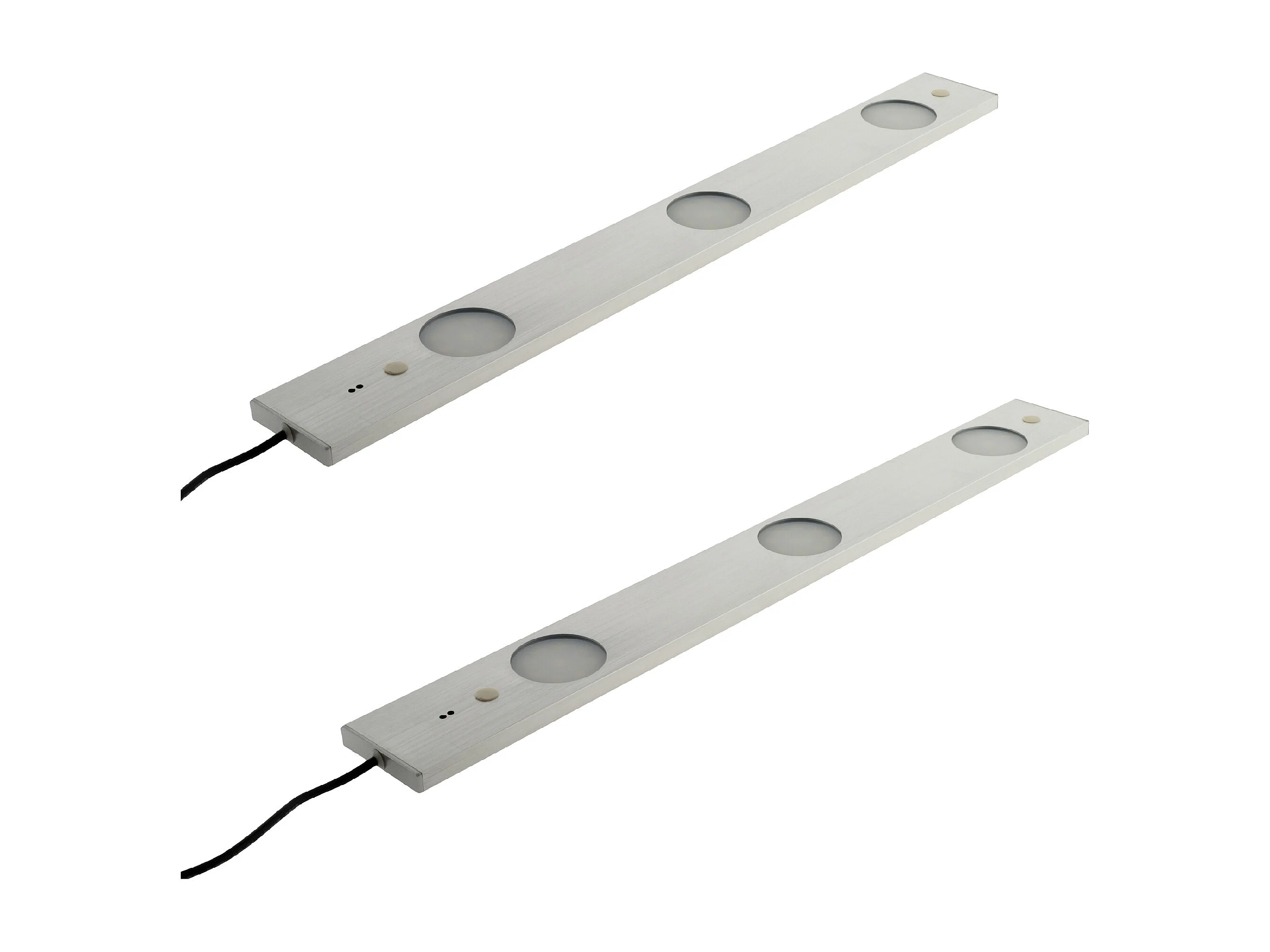Lot de 2 réglettes LED ultraplates 3 spots 6,2W + détecteur de mouvement - Inox brossé - Zenitech
