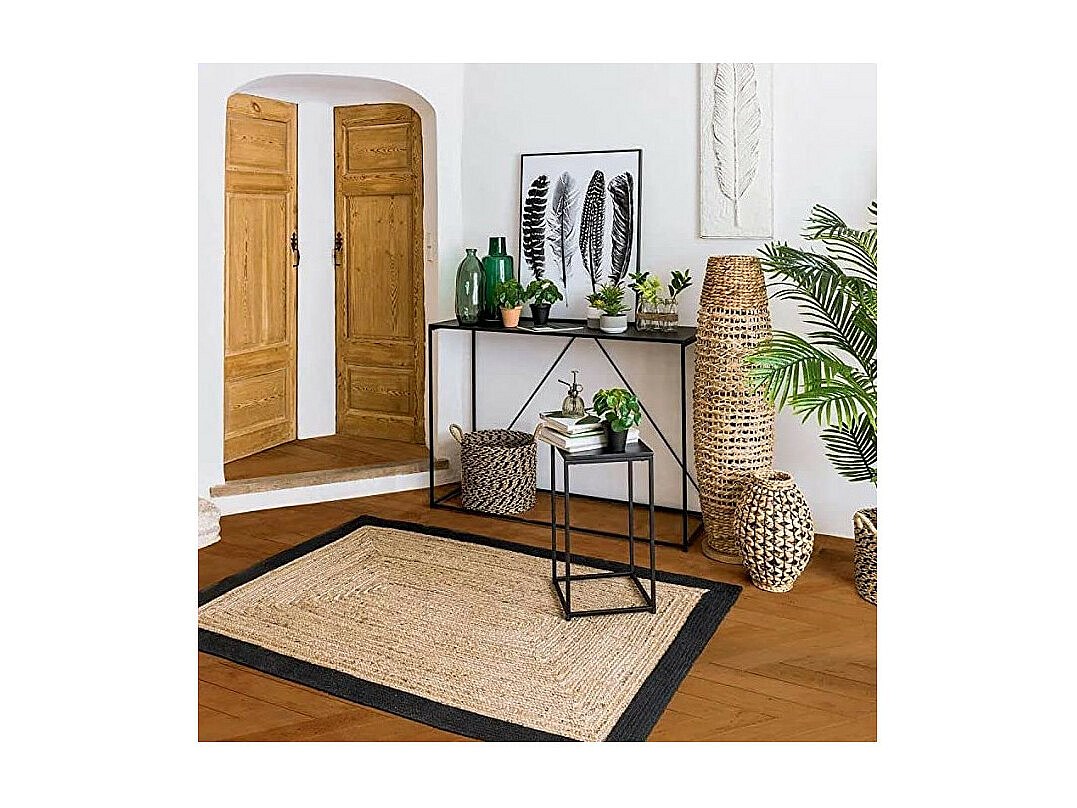 Table basse de salon moderne table d'appoint en MDF noyer et pieds noir 65x40 cm