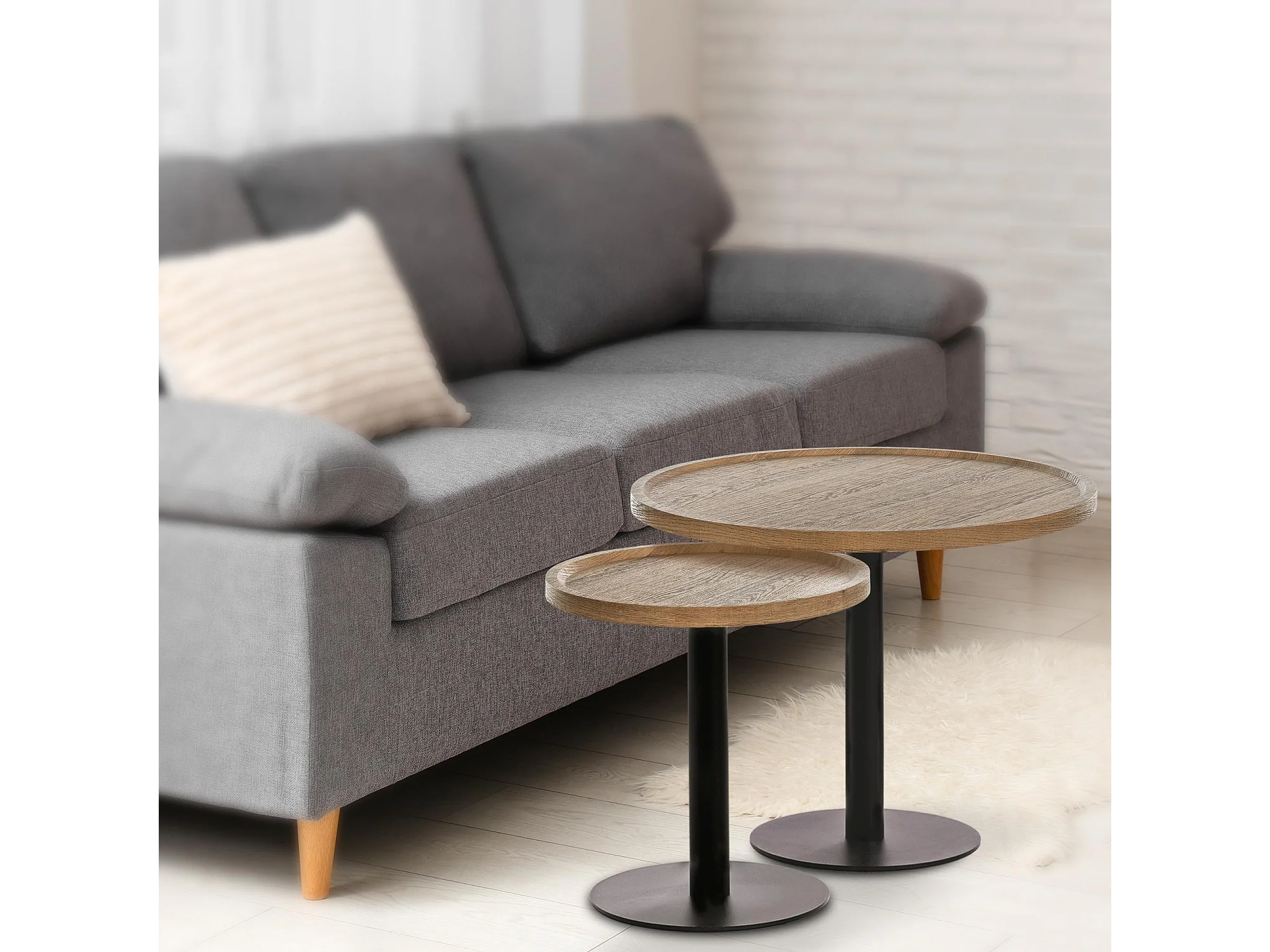 Lot de Kombi Table d'appoint - rond Ø 40 cm - Bois - Marron - Aspen