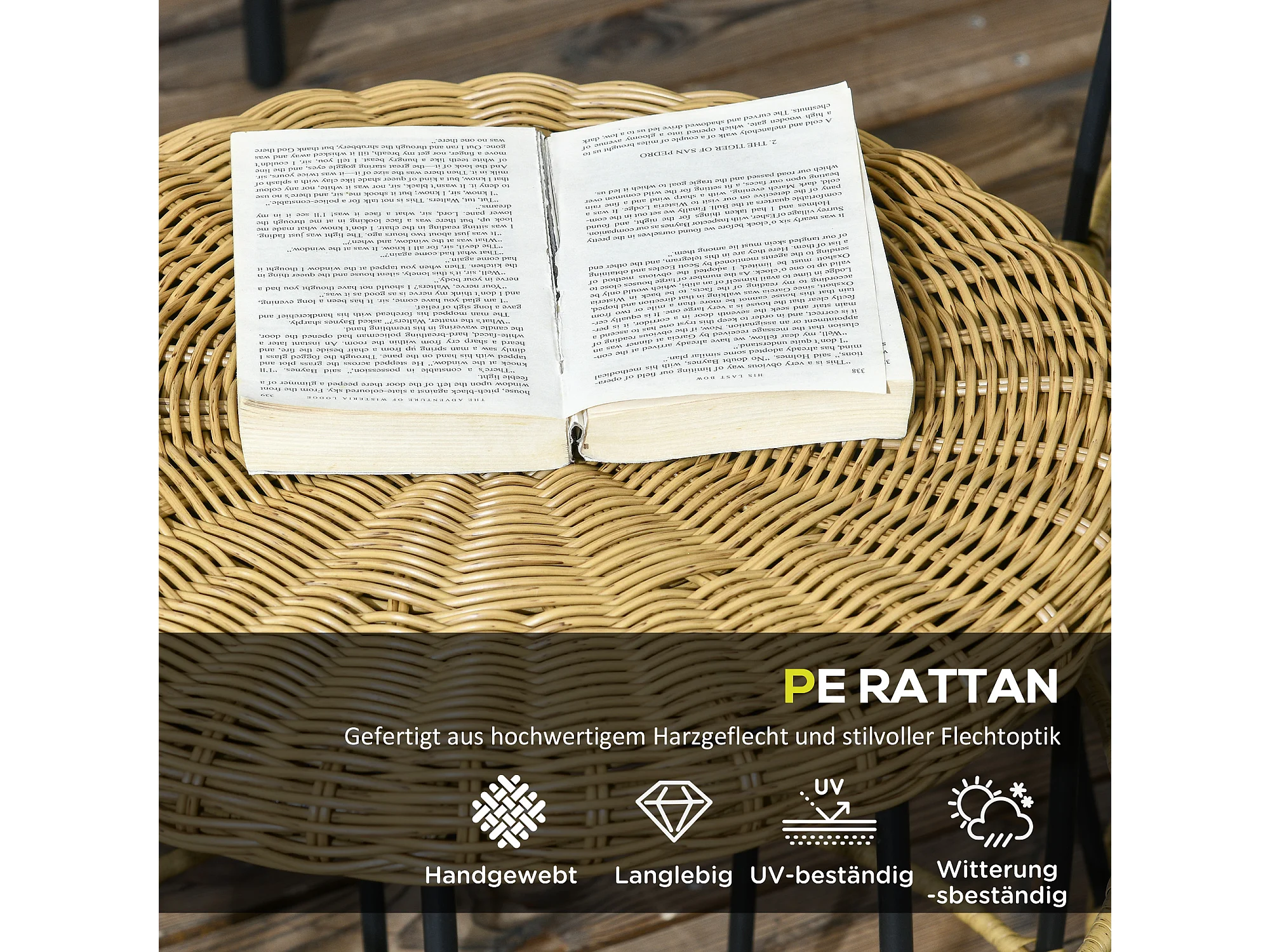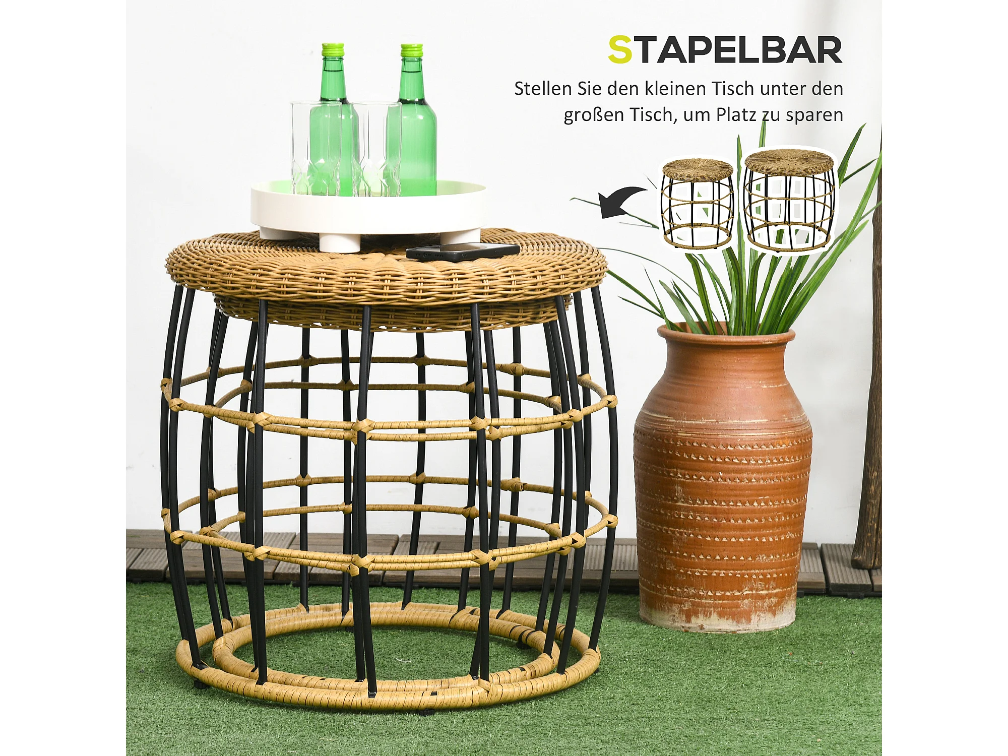 Lot de 2 tables basses empilables en rotin, kaki, pour jardin et terrasse (Ø58x53cm)