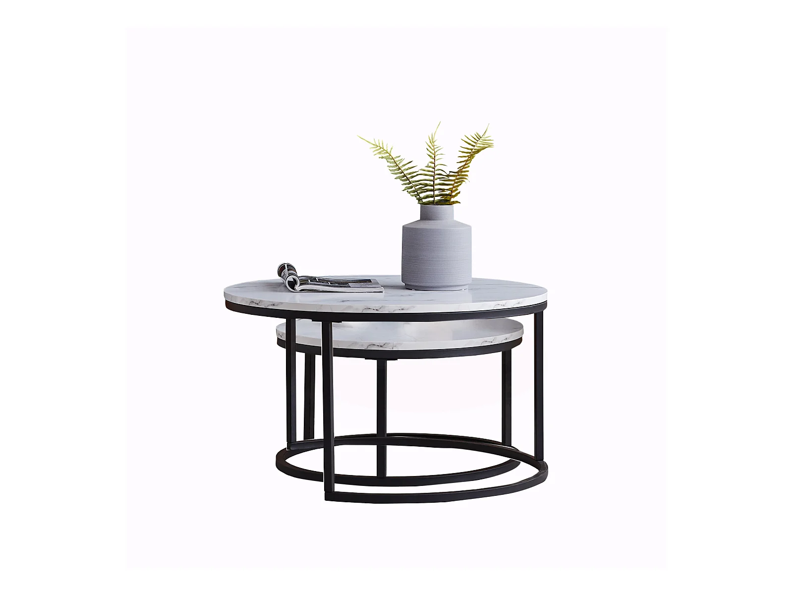 Lot de 2 tables basse, Table De Salon Gigognes Ronde, noir et blanc
