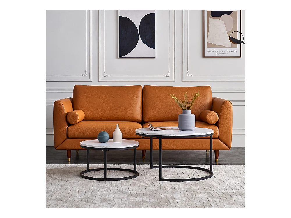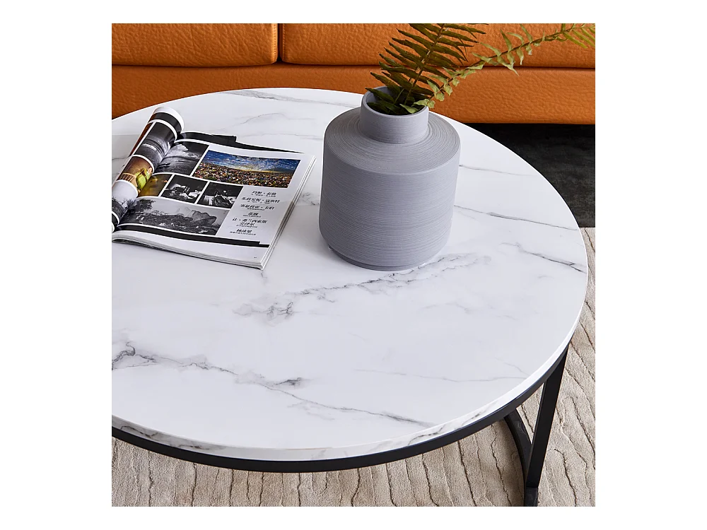 Table de Salon avec Effet marbre, Table Basse Gigogne avec Cadre Noir, Table Ronde Moderne, Table Basse Ronde Blanche Set de 2