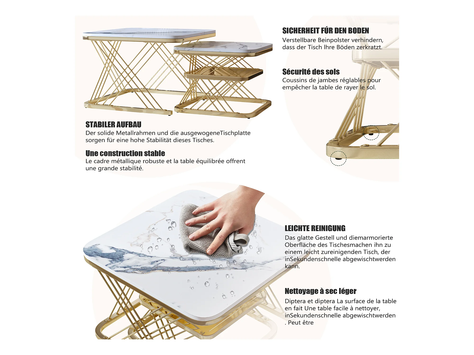 Lot de 2 Tables Basses gigognes, Carrées Table d'appoint, doré