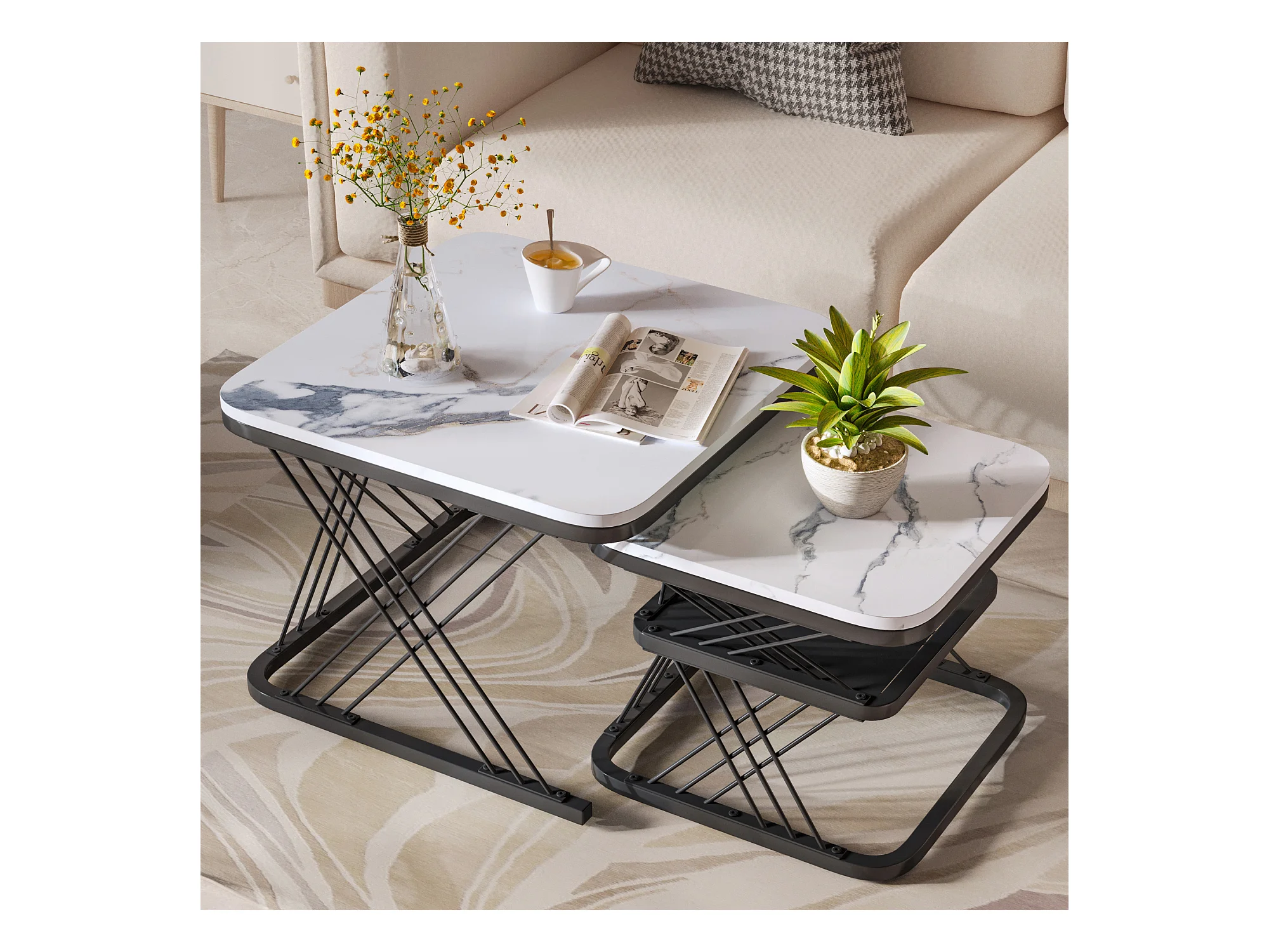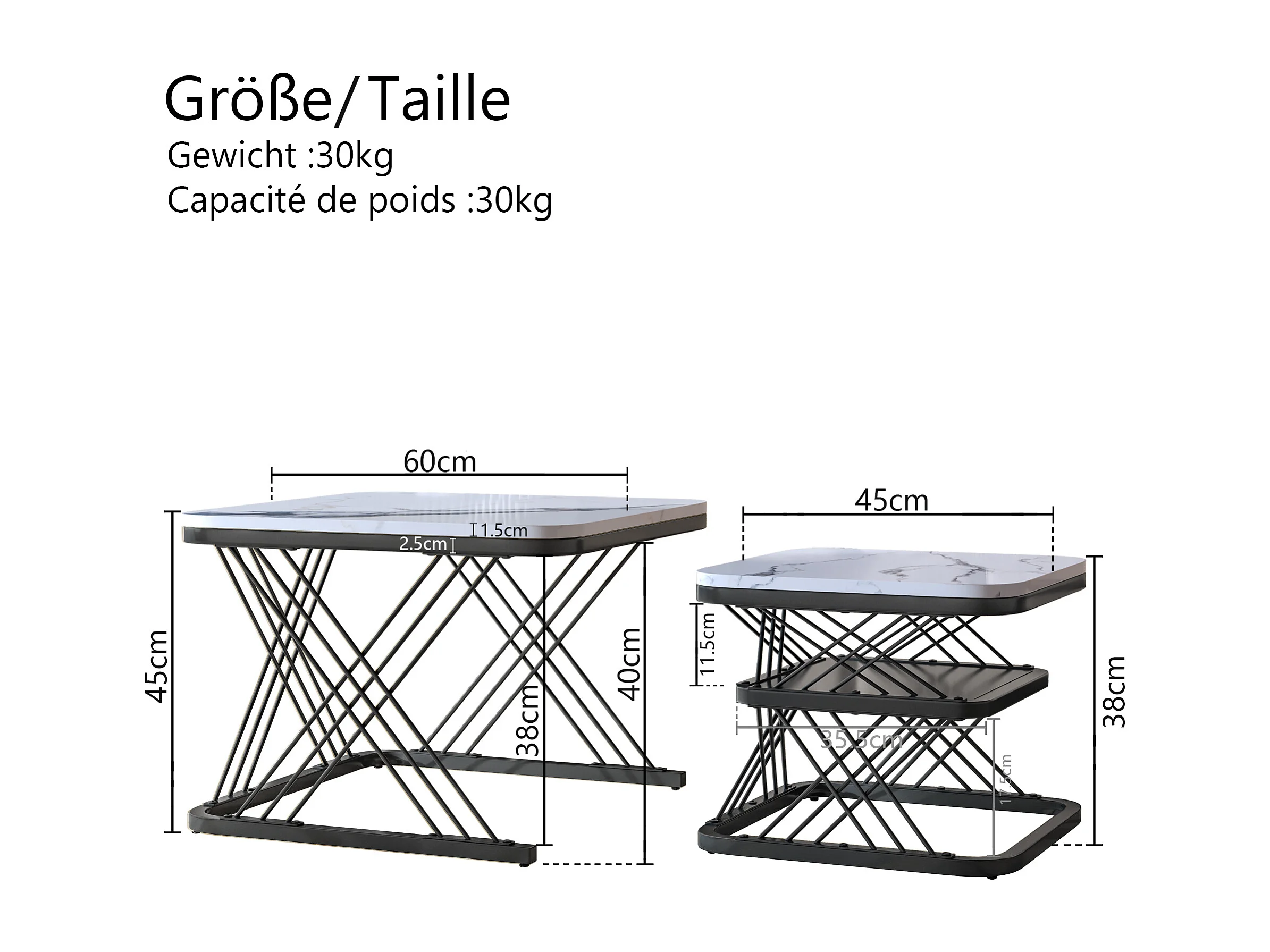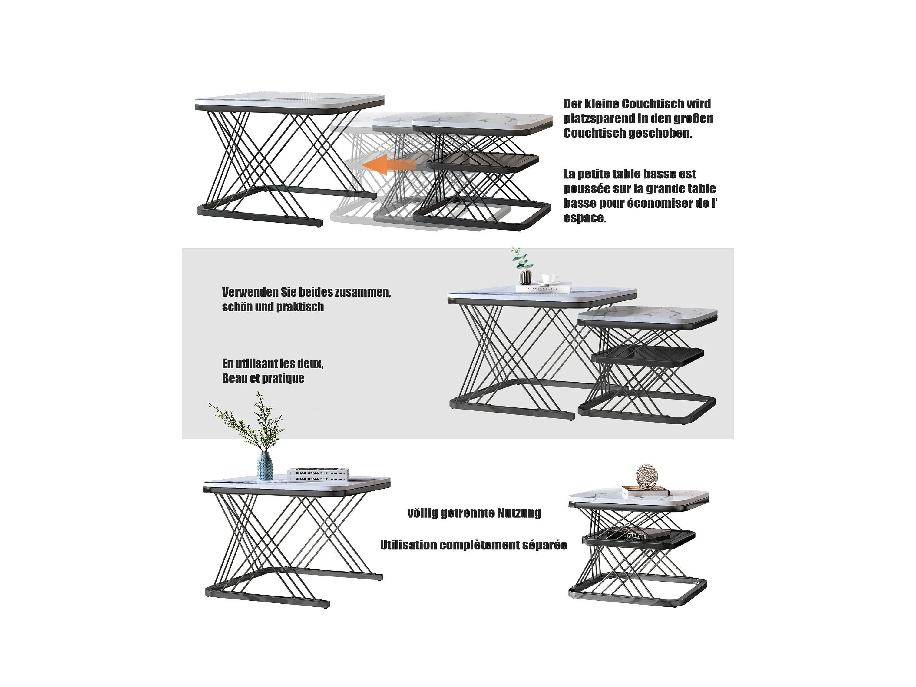 Lot de 2 Tables Basses gigognes, Carrées Table d'appoint, noir