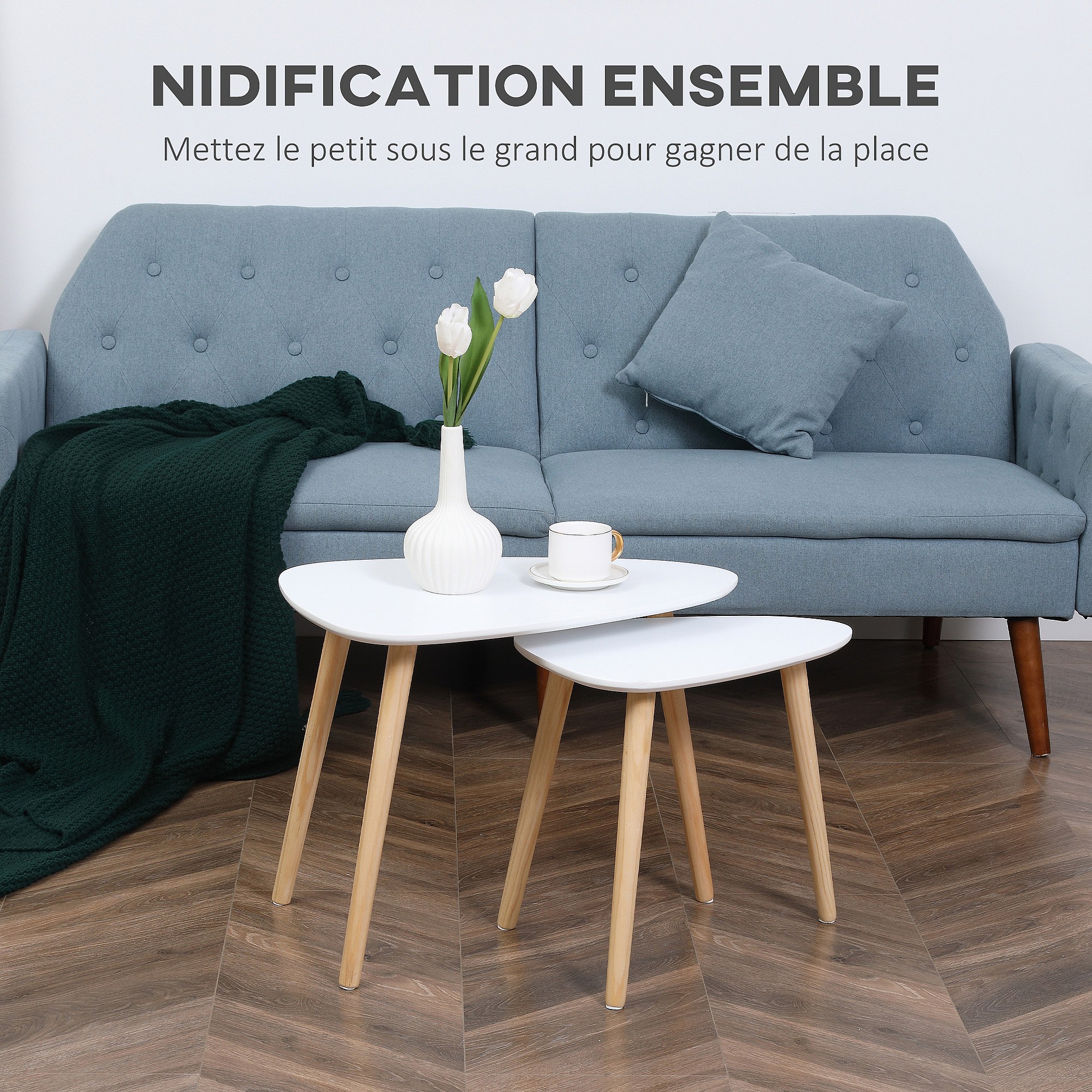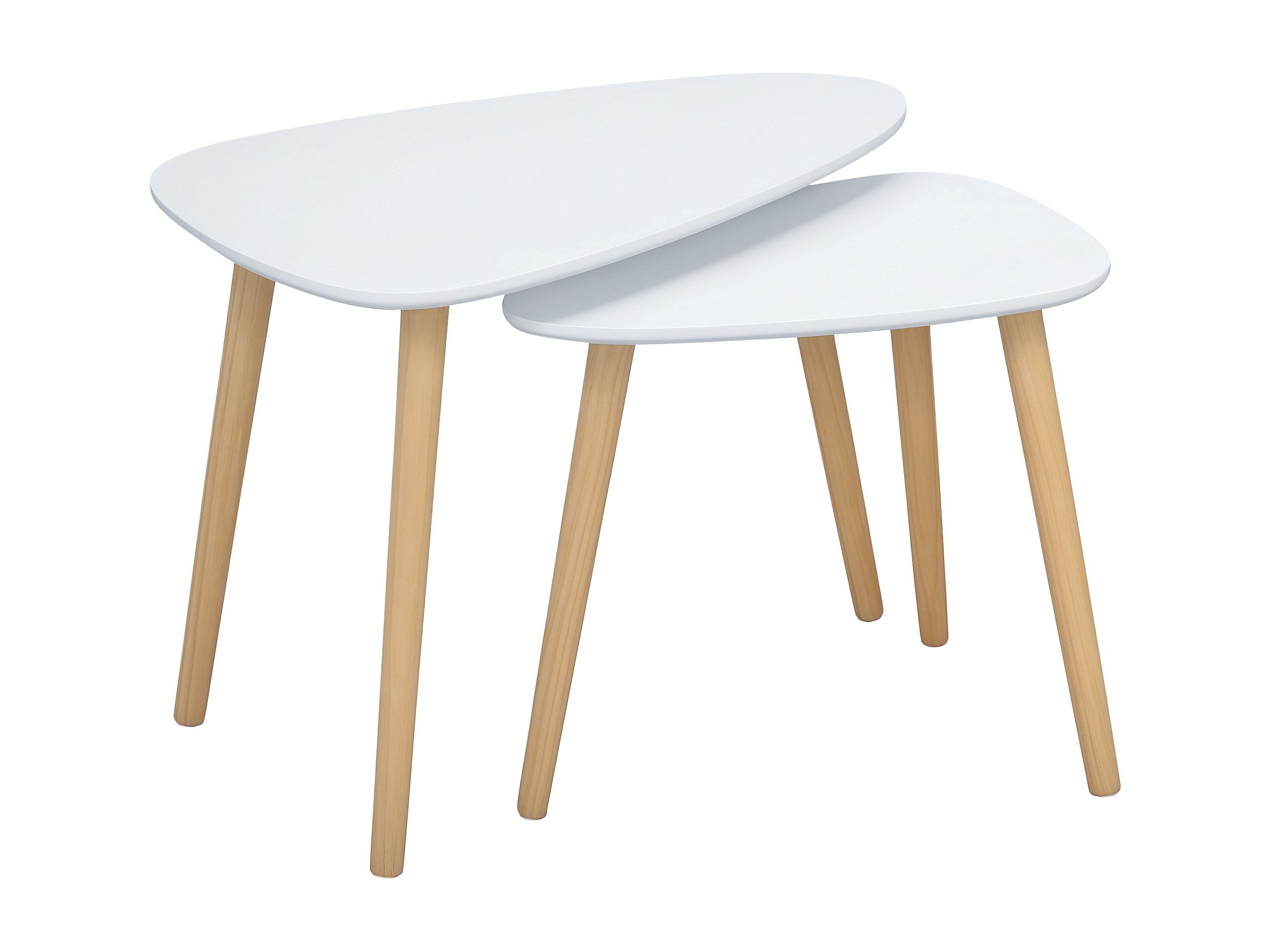 Lot de 2 tables basses gigognes design scandinave bicolore bois clair blanc pieds effilés bois de pin