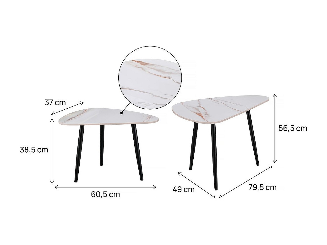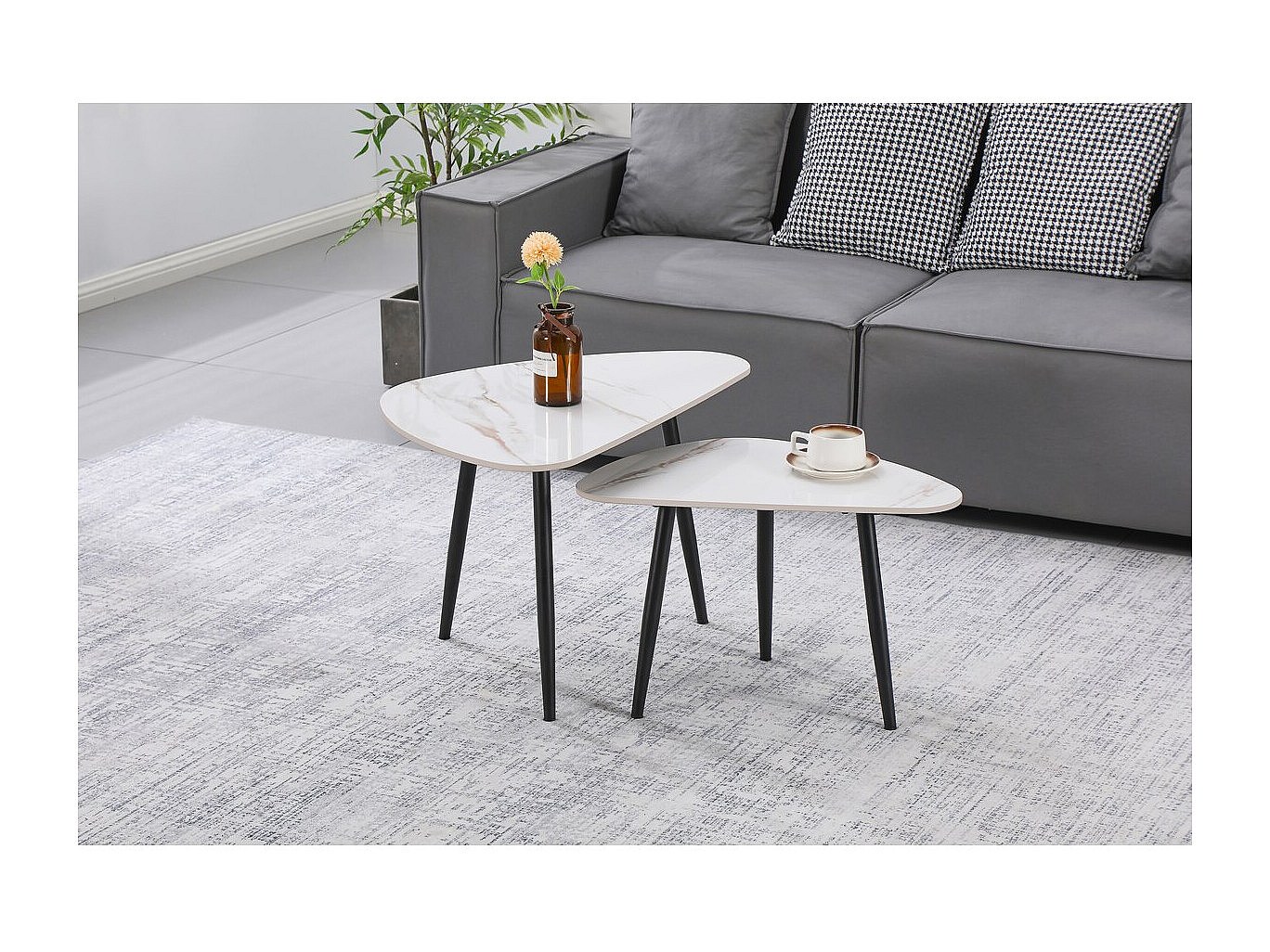 Lot de 2 tables basses gigognes en céramique "Terra" - 49 x 79 x 56 cm - Blanc