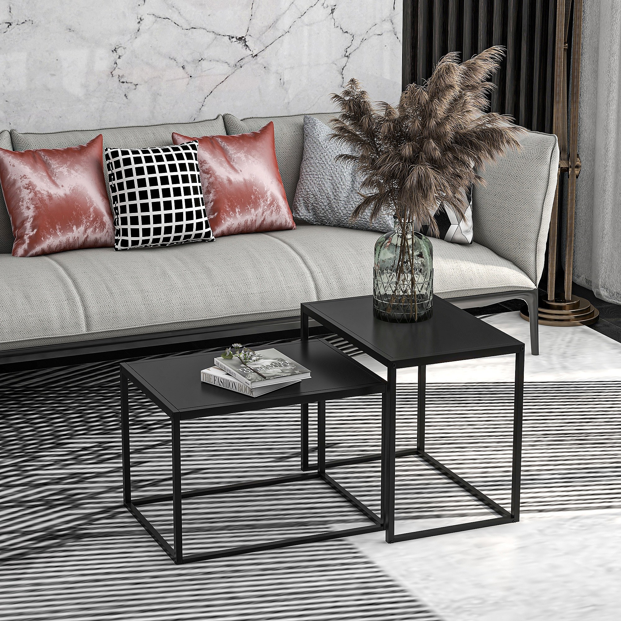 Lot de 2 tables basses gigognes carrées design contemporain encastrable acier noir