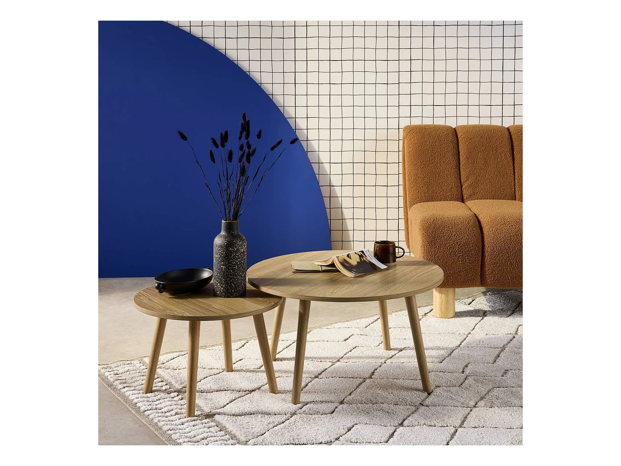 Lot de 2 tables basses rondes effet chêne. Ø58 x H 40cm / Ø50 x H 33cm SYLVA