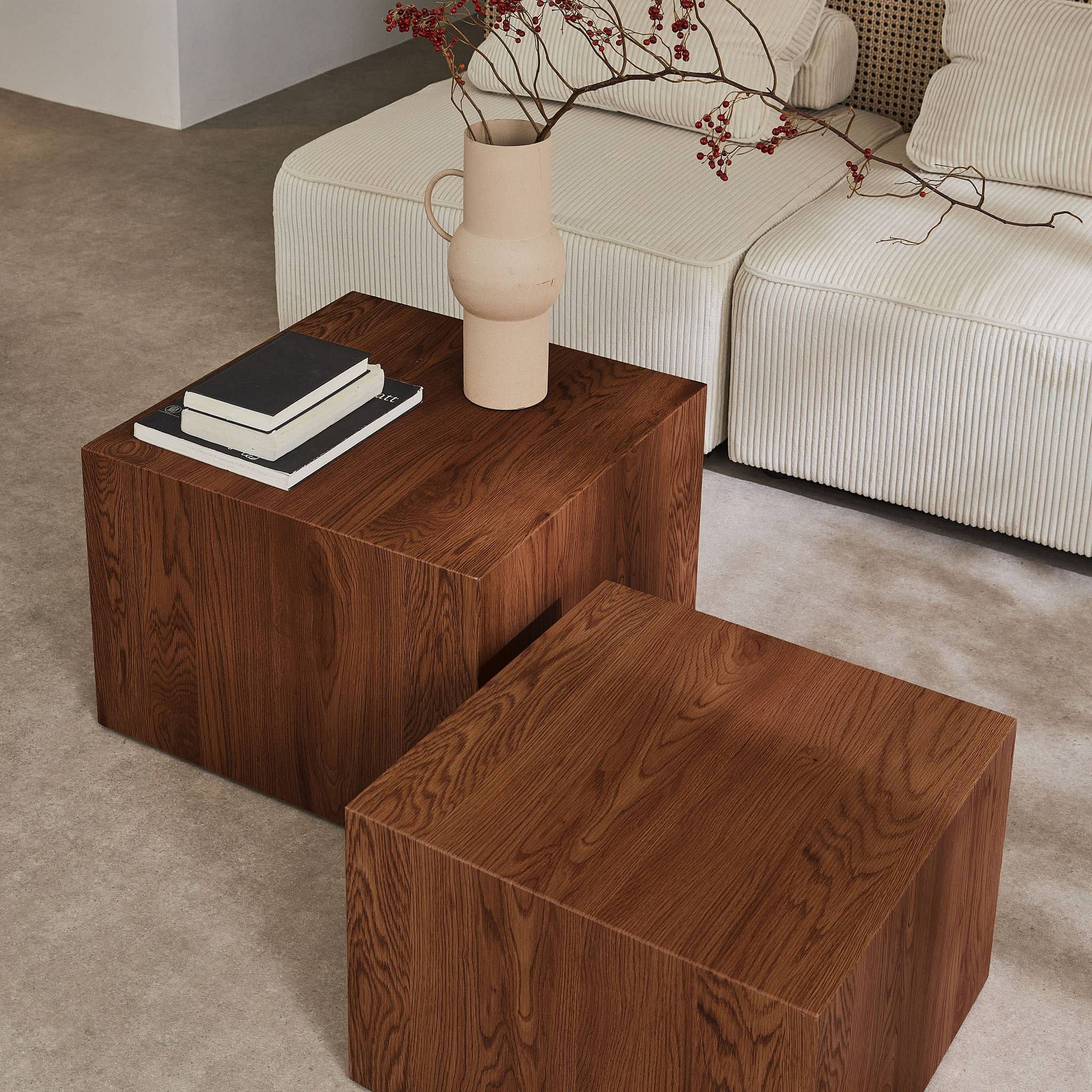 Lot de 2 tables basses rondes effet noyer. Ø58 x H 40cm / Ø50 x H 33cm SYLVA