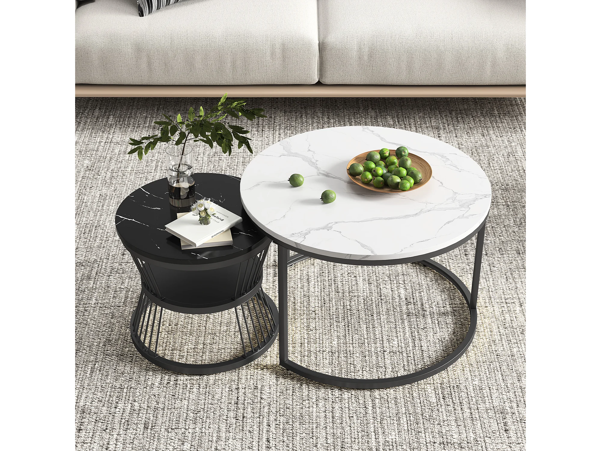 Lot de 2 tables basses rondes modernes – Marbre et métal, Élégantes pour salon, bureau, balcon