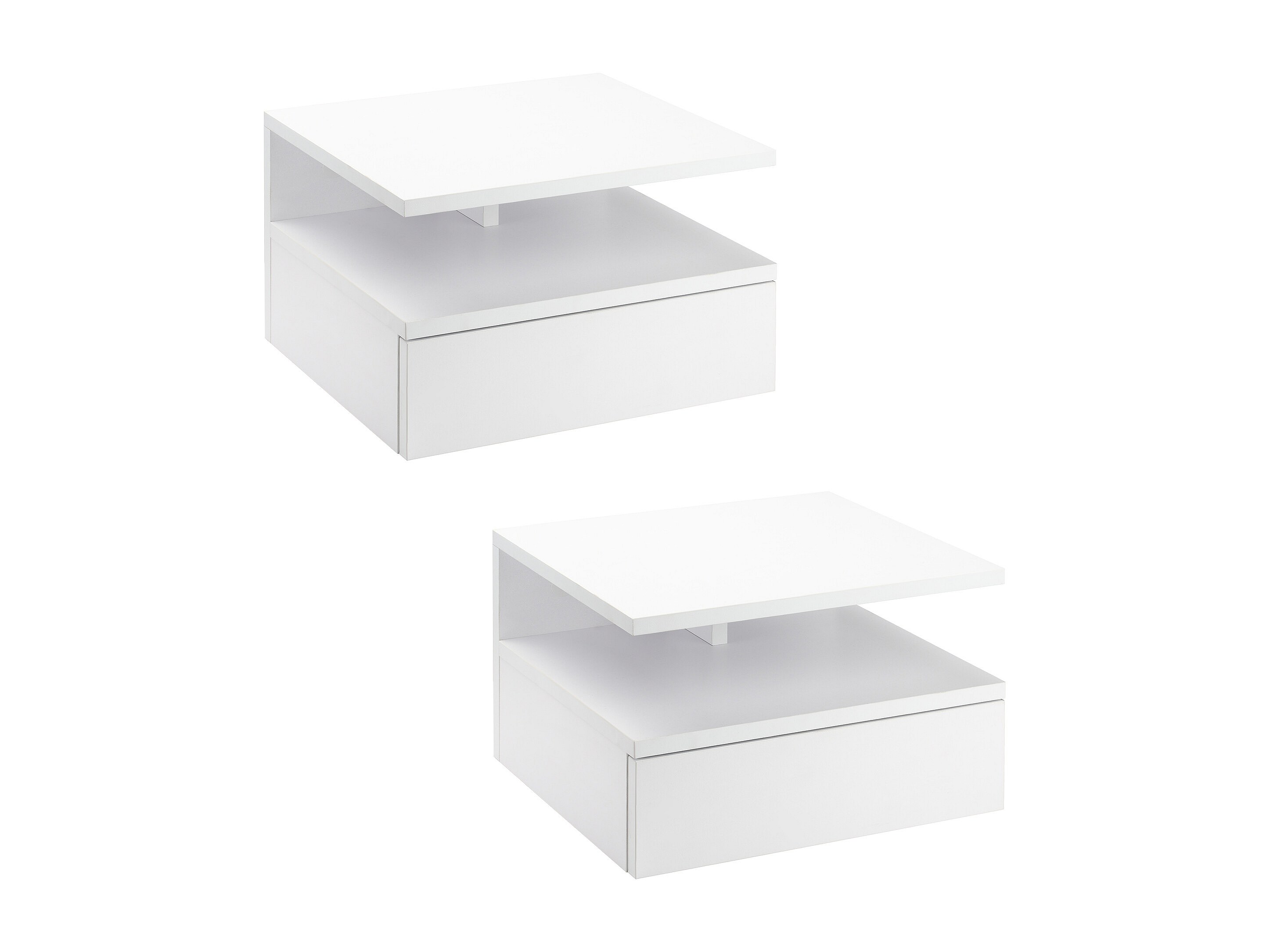 Lot de 2 tables de chevet murales - lot de 2 tables de nuit - tiroir coulissant, niche et plateau - panneau particules blanc